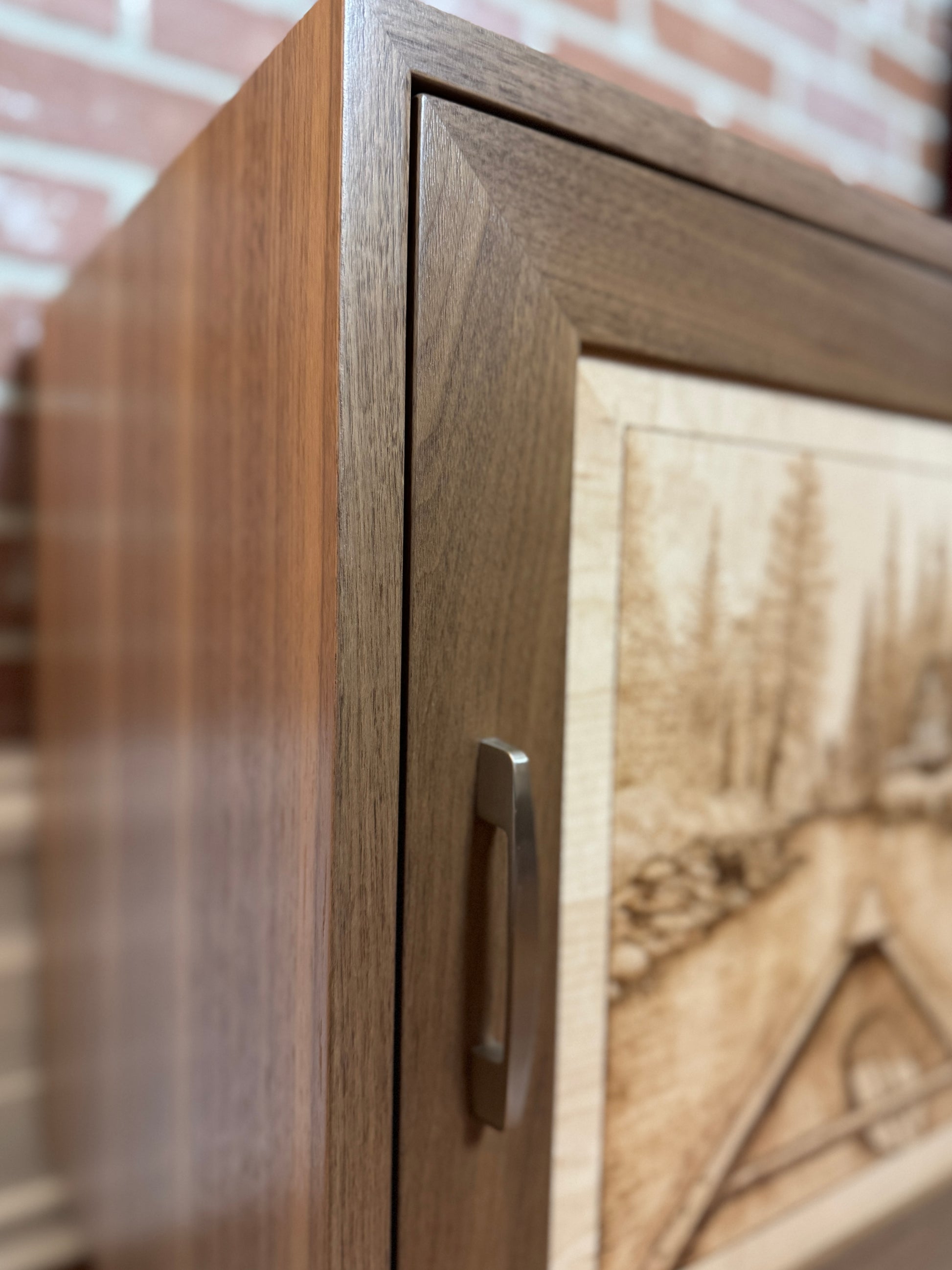 This is a beautiful one of a kind custom made cabinet by local craftsman Colby O’Brien.