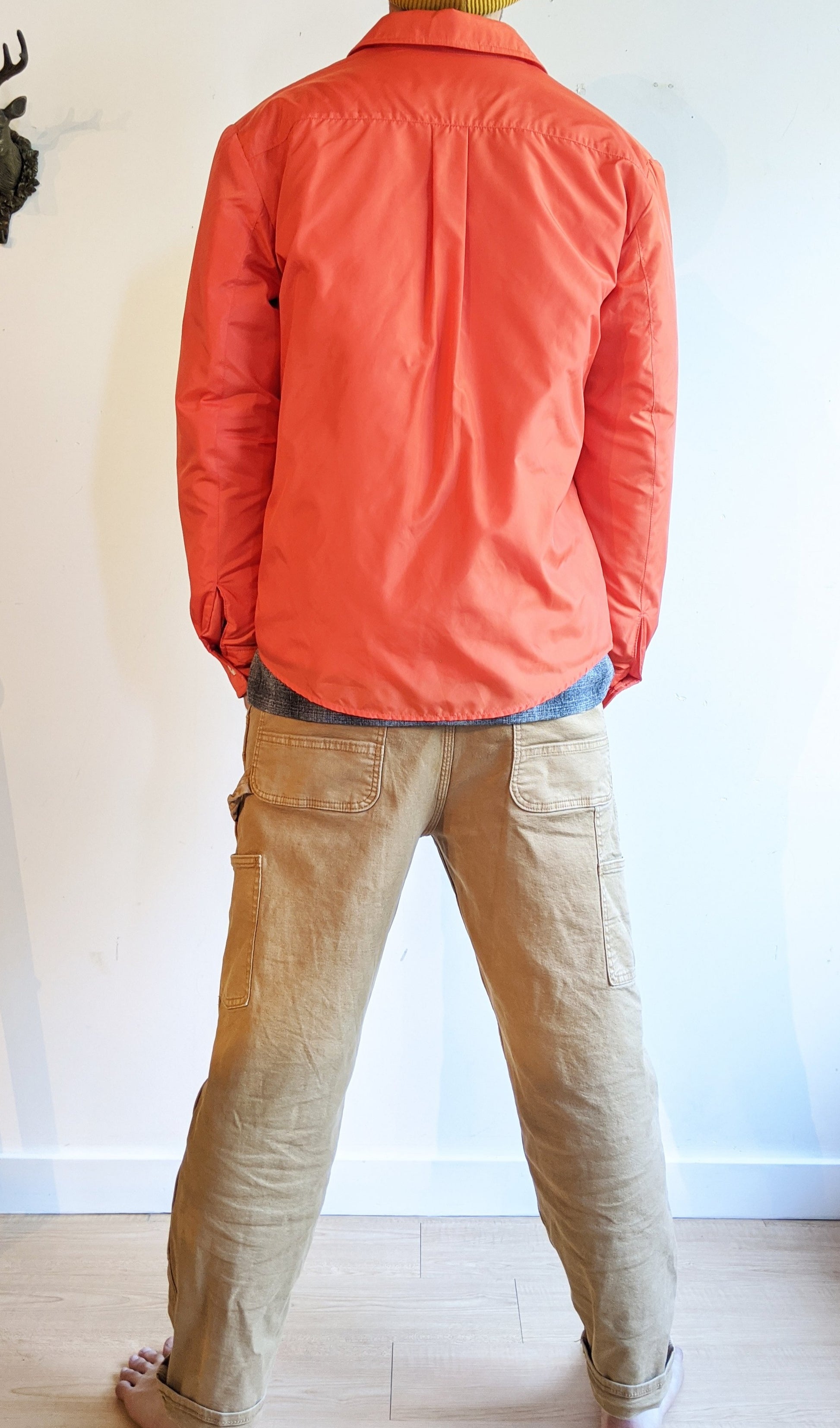 More orange than a pumpkin on halloween this jacket/overshirt will make people scream "nice retro jacket dude" or "get away from me you look like you just got out of prison"! Either-way you'll make a statement with this unique fashion item. Style it with more muted tones to make your outfit really pop!