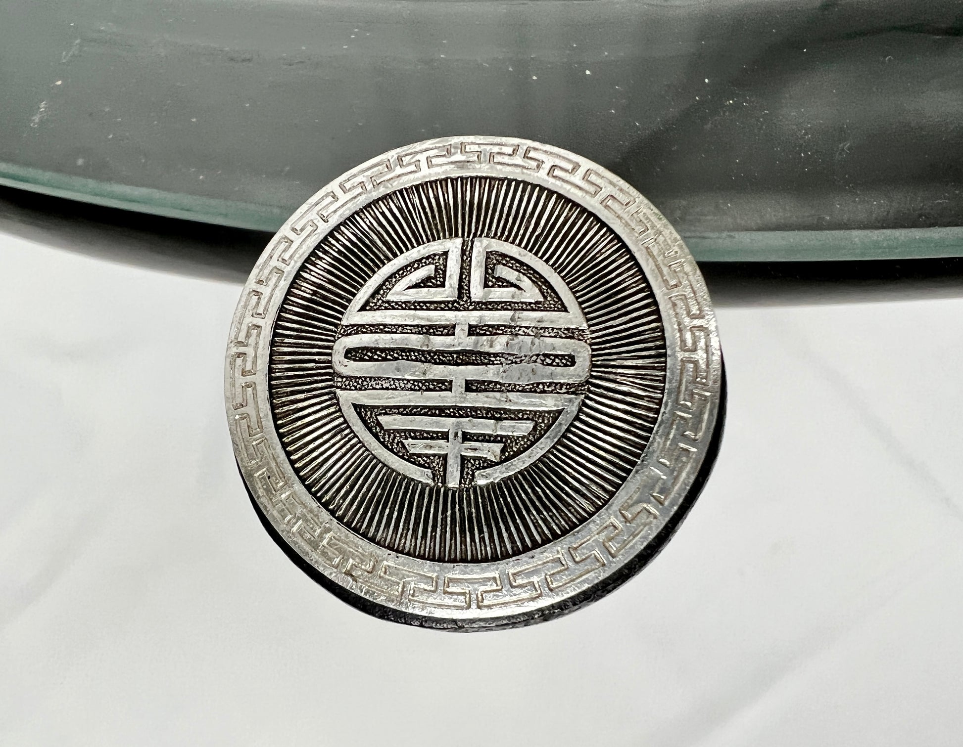 - Features 4 round silver asian inspired accents