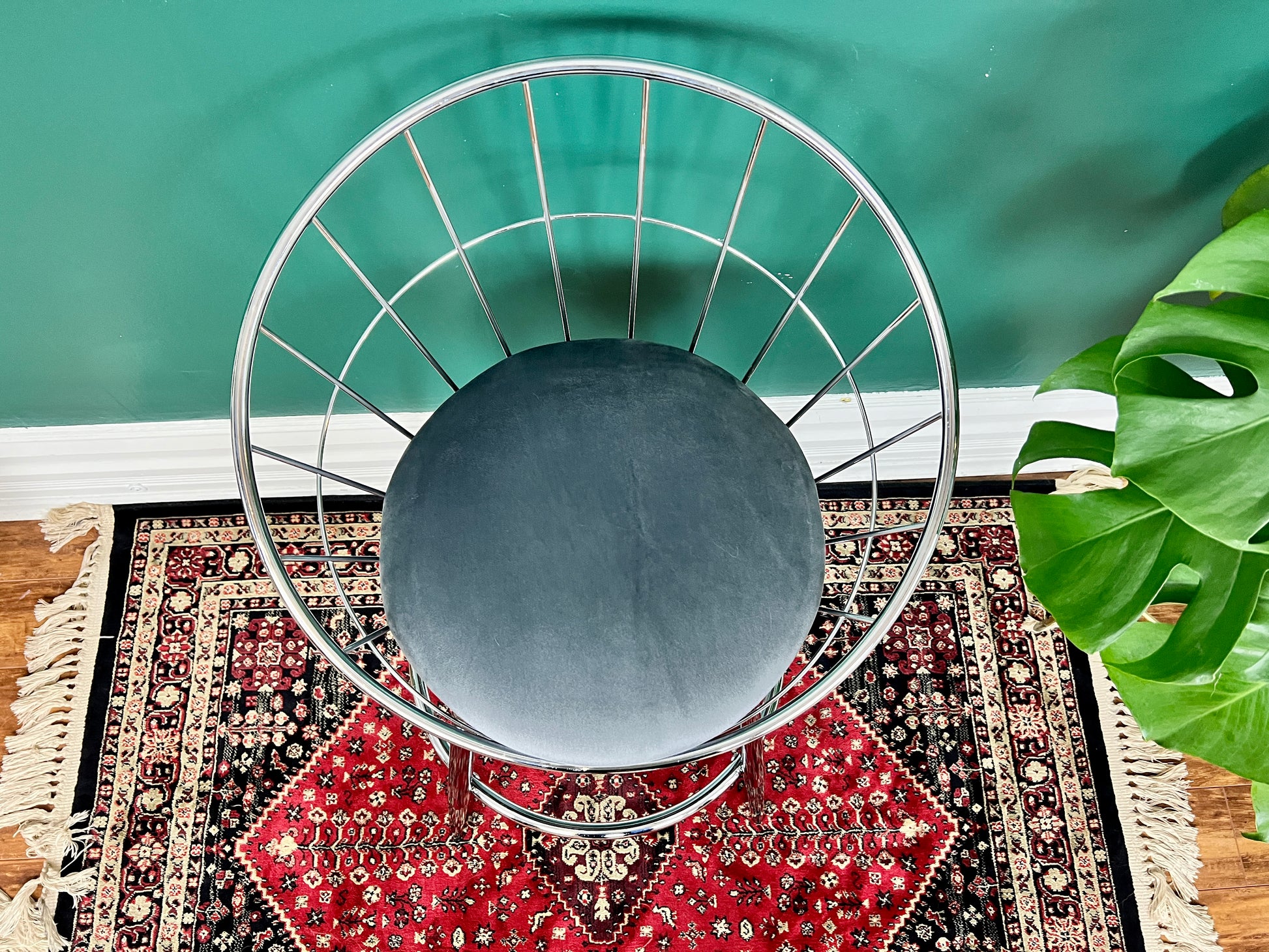 With a lovely chrome designed frame, and teal coloured velvet seat cushion - this stool will definitely make a statement in your home!