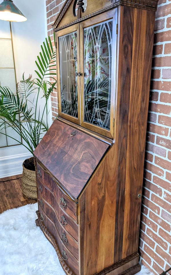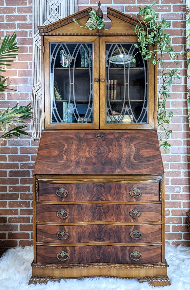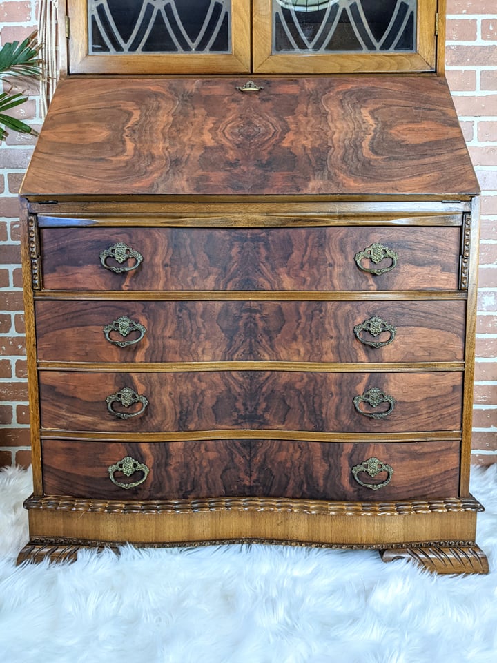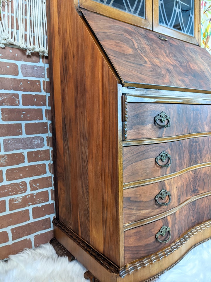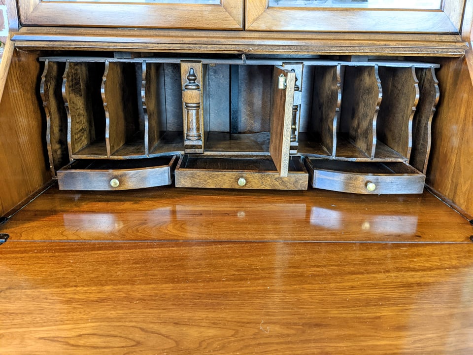 From its curved drawers, beautifully detailed glass cabinet & quaint cubbies & drawers - this experienced piece is an antique in the truest sense of the word!