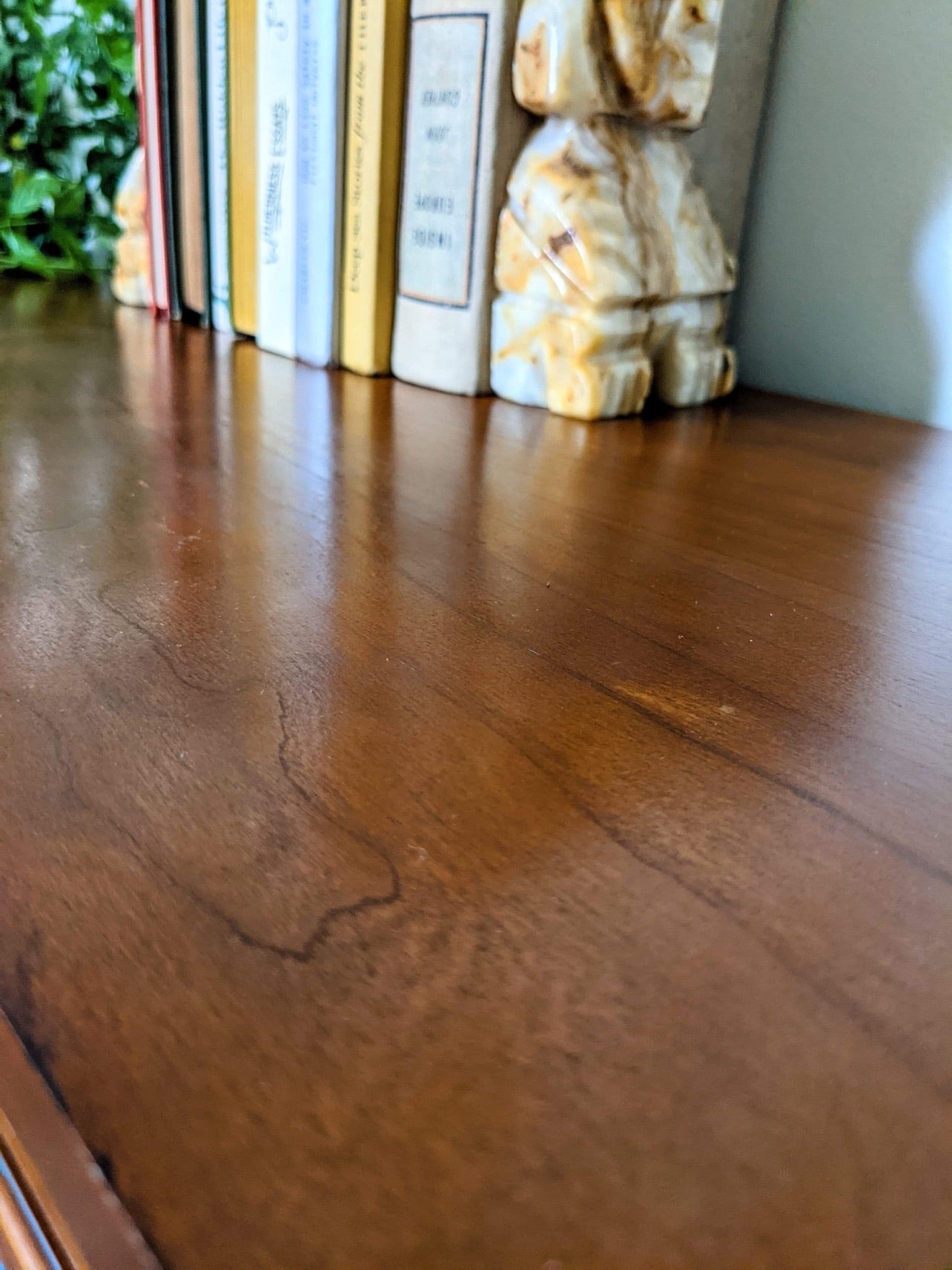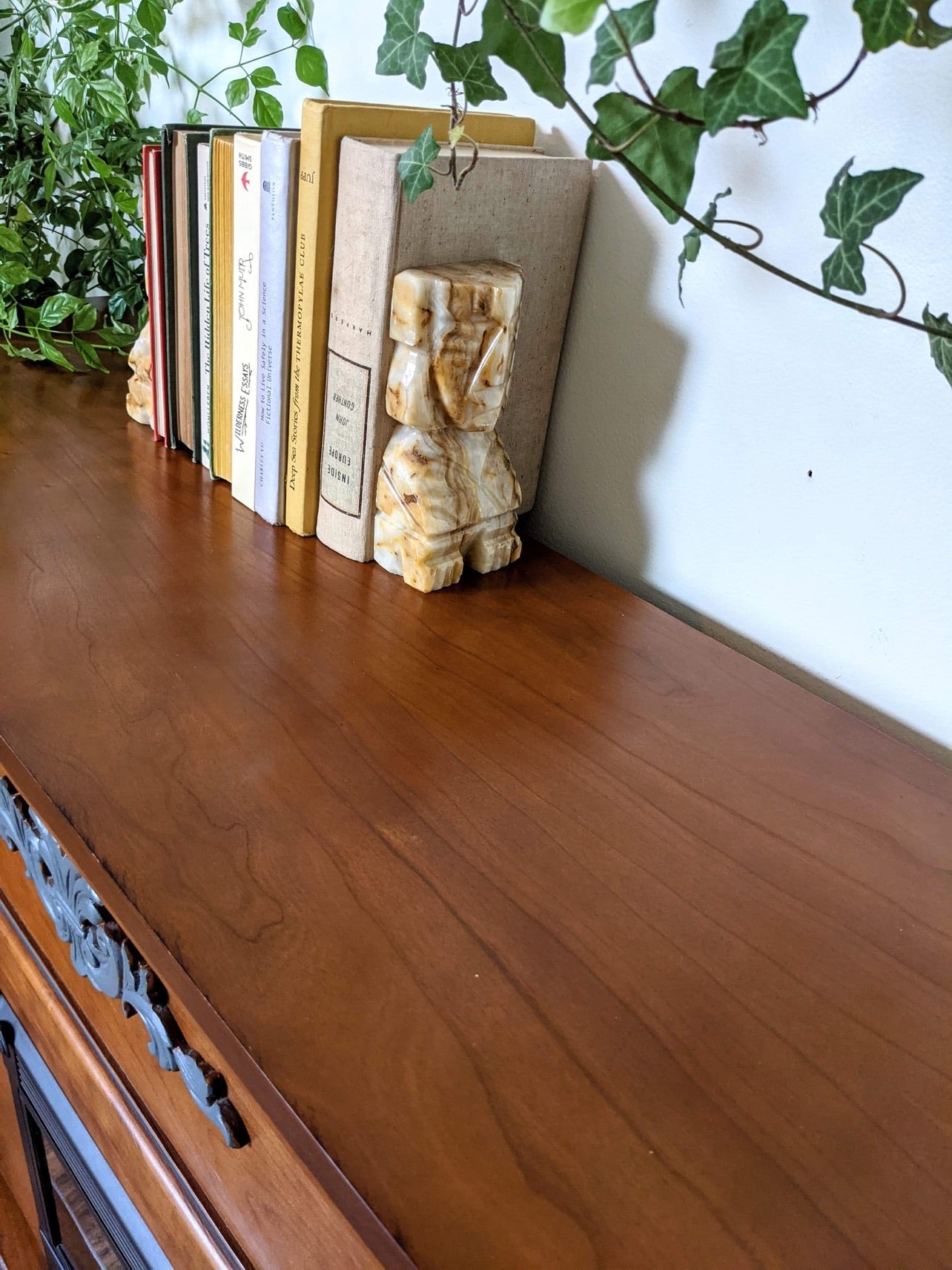 - Beautiful blue/grey paint accents embellish this wooden wonder