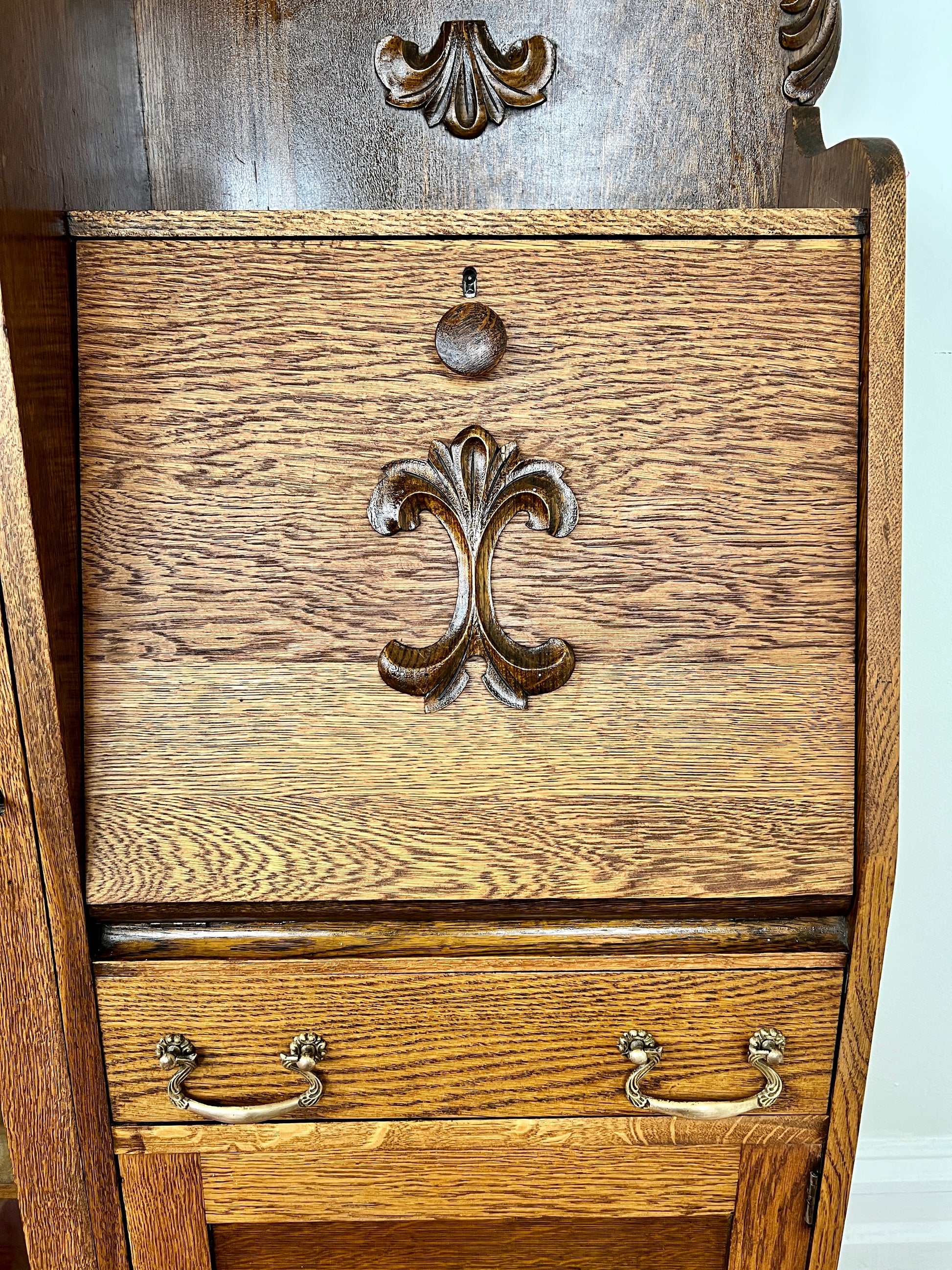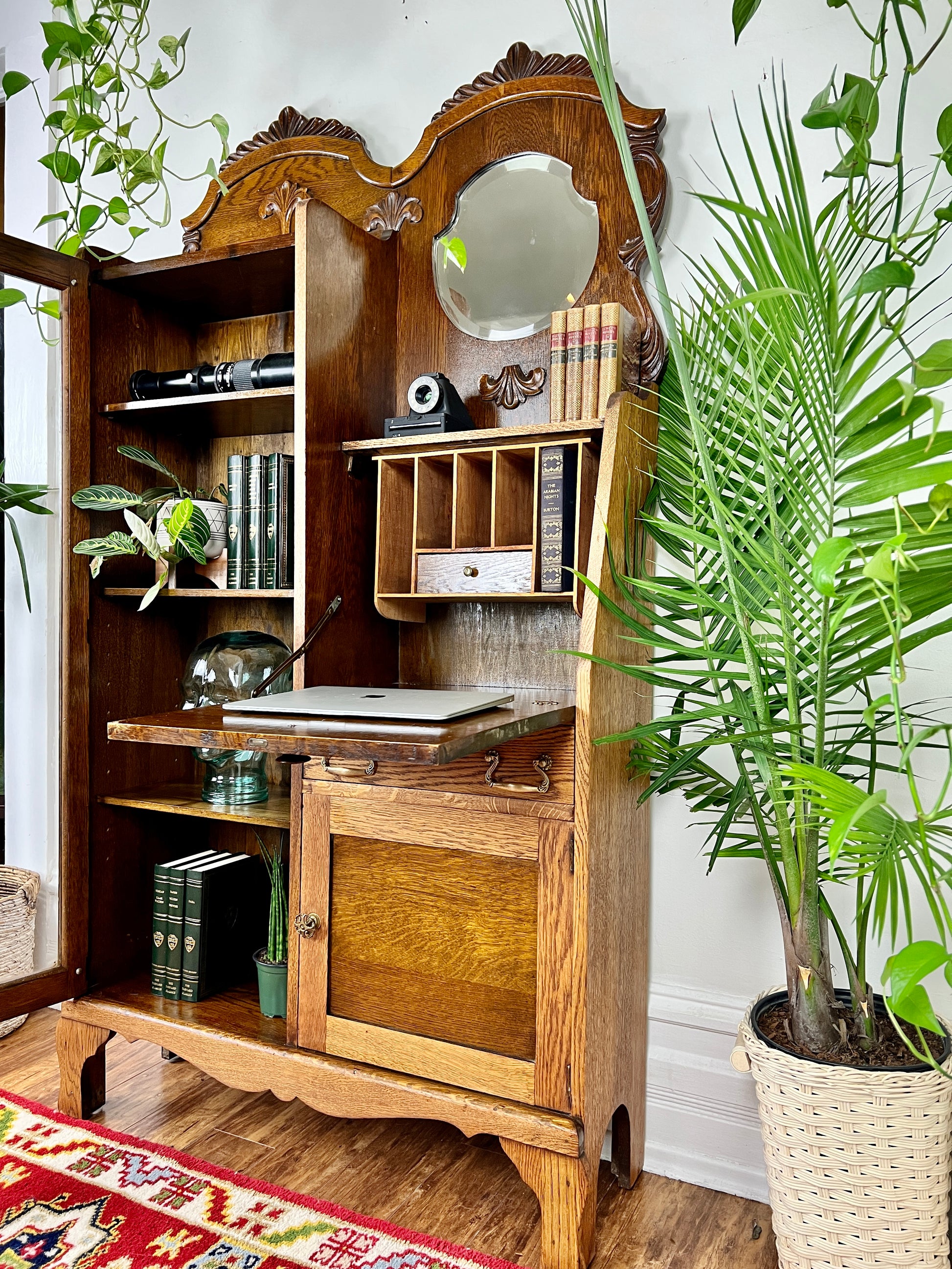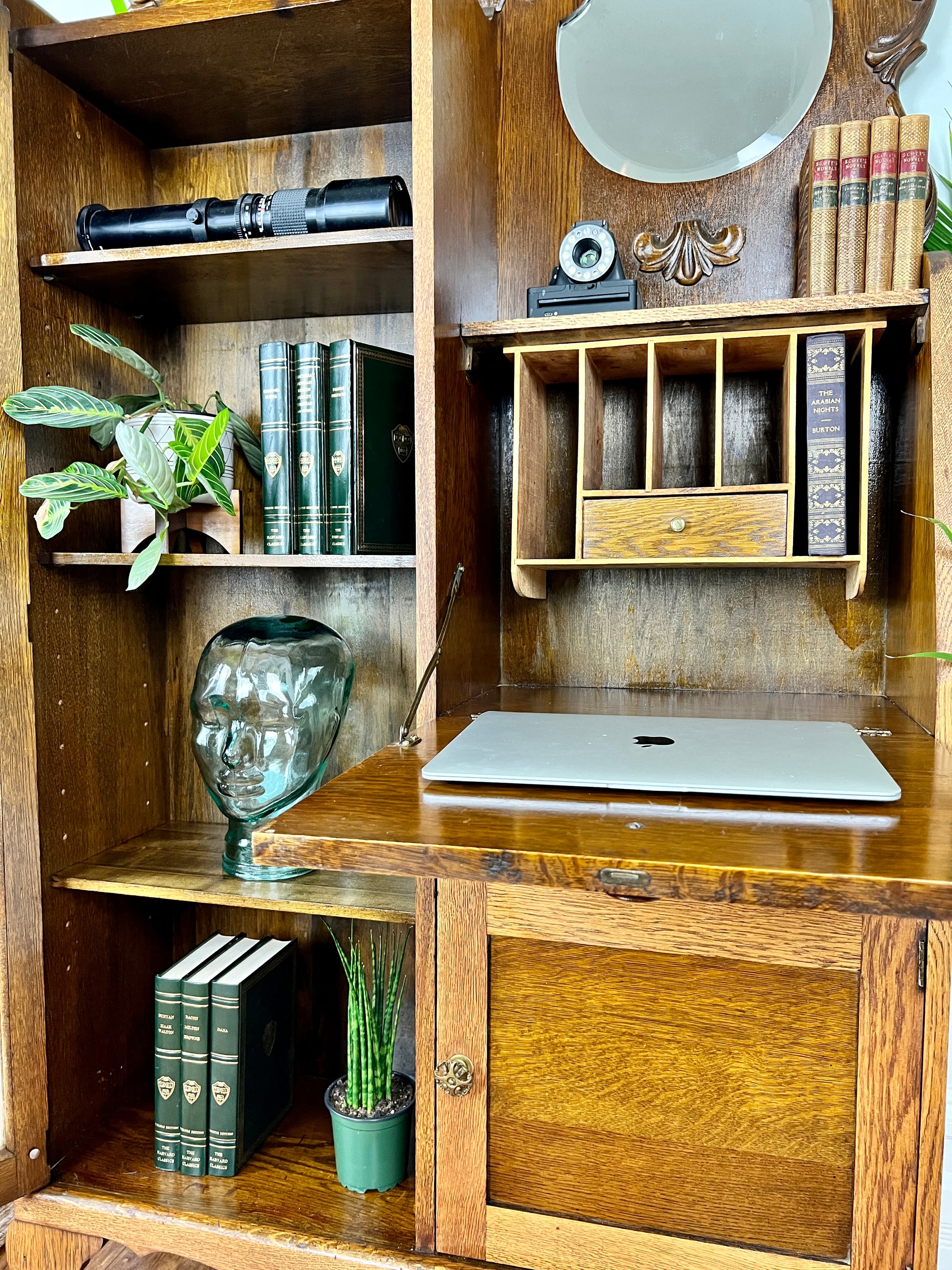 This is Fellini. He is a badass, handsome secretary desk that has been rigorously restored through lots of sanding, staining & waxing.