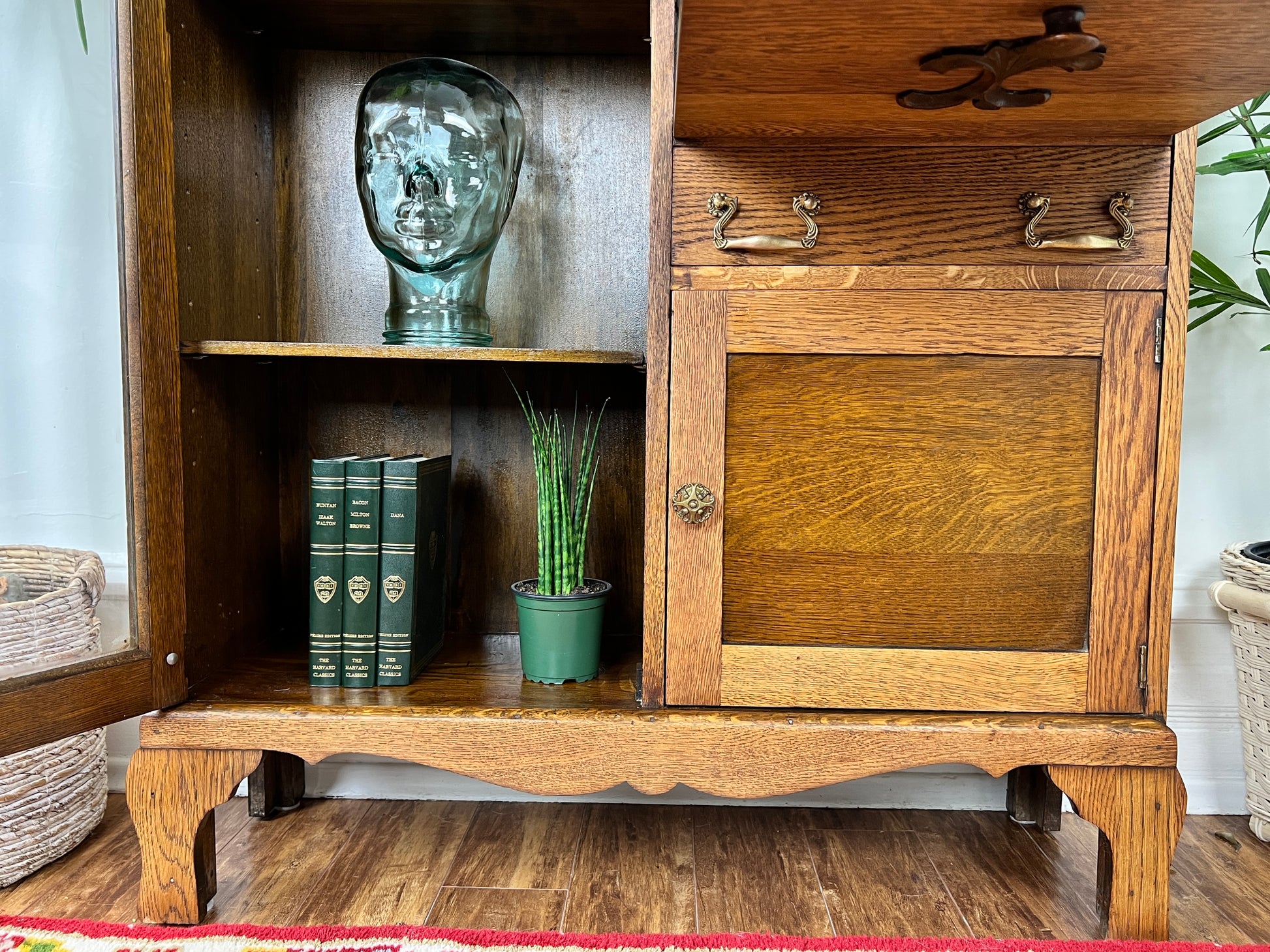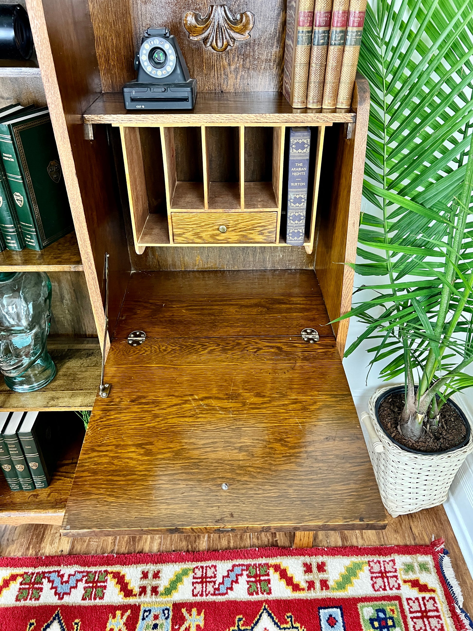Please forgive the hyperbole, but have you ever seen something so stunning? I mean it's just a delight to the eyes. Now this beauty is made from solid red oak, and is so versatile, with tons of nooks & crannies!