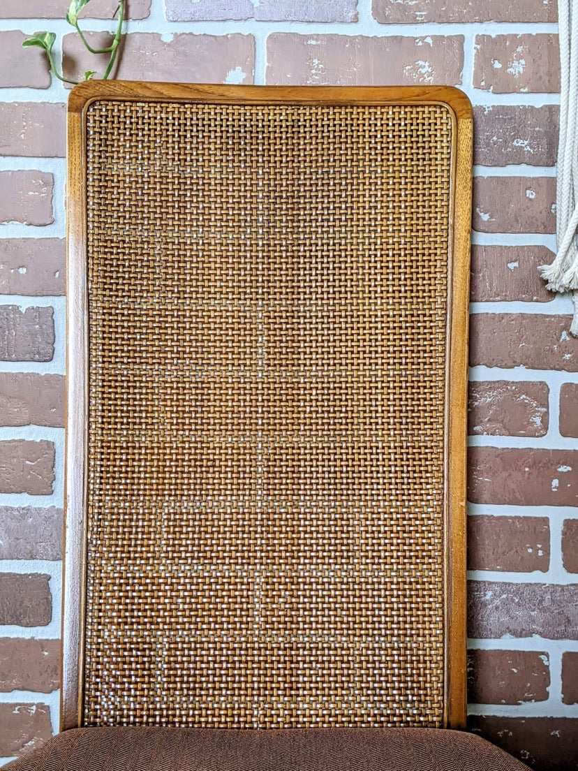 The Ginger & Matilda Chairs are the quintessential 70’s chairs. Oak style wood, wicker backing & funky corduroy style fabric on the seat cushion.