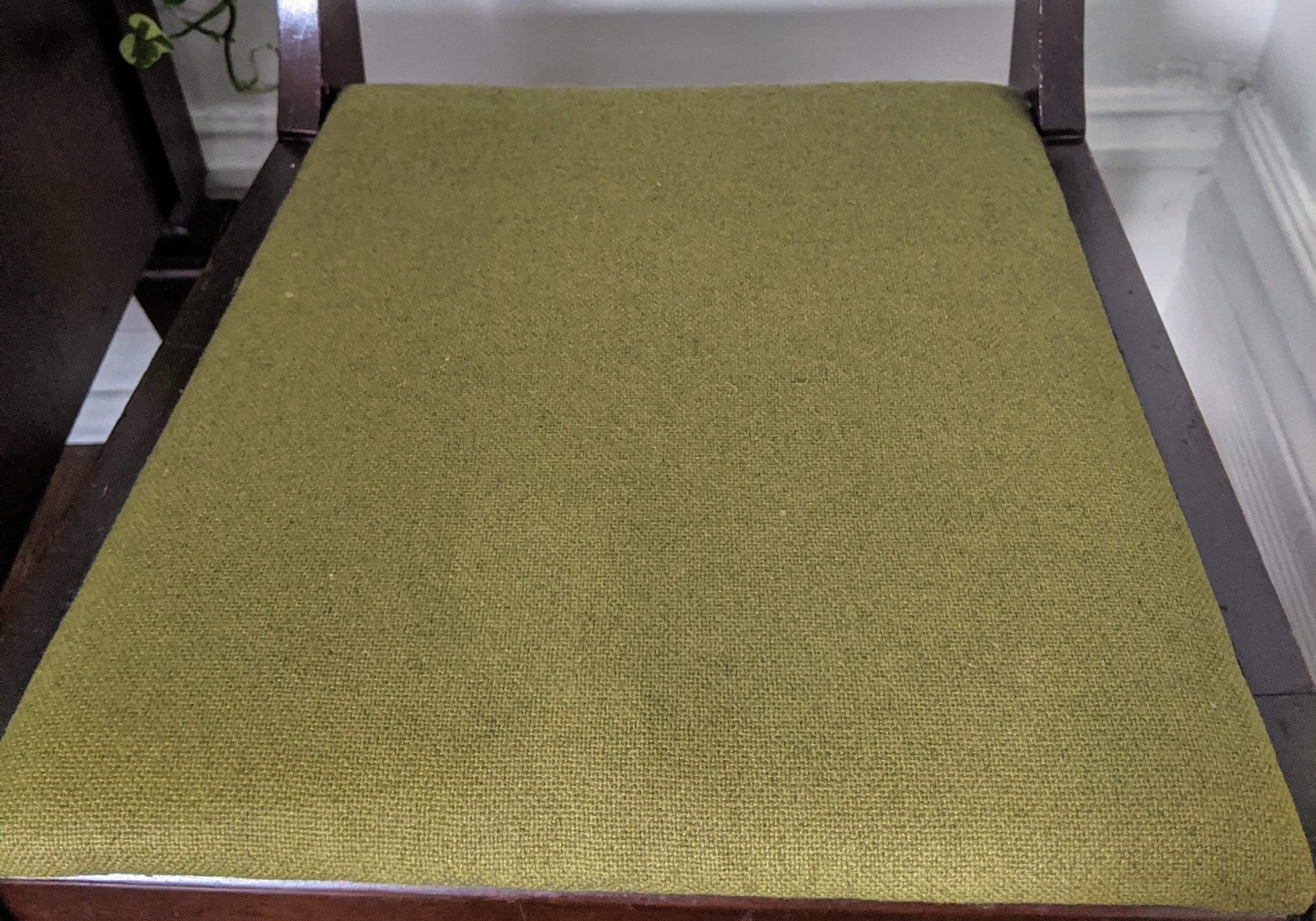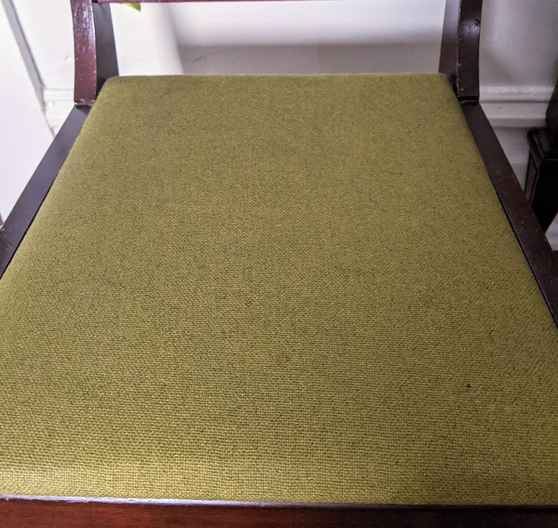 - Original tweed like green material in great condition on chair cushions