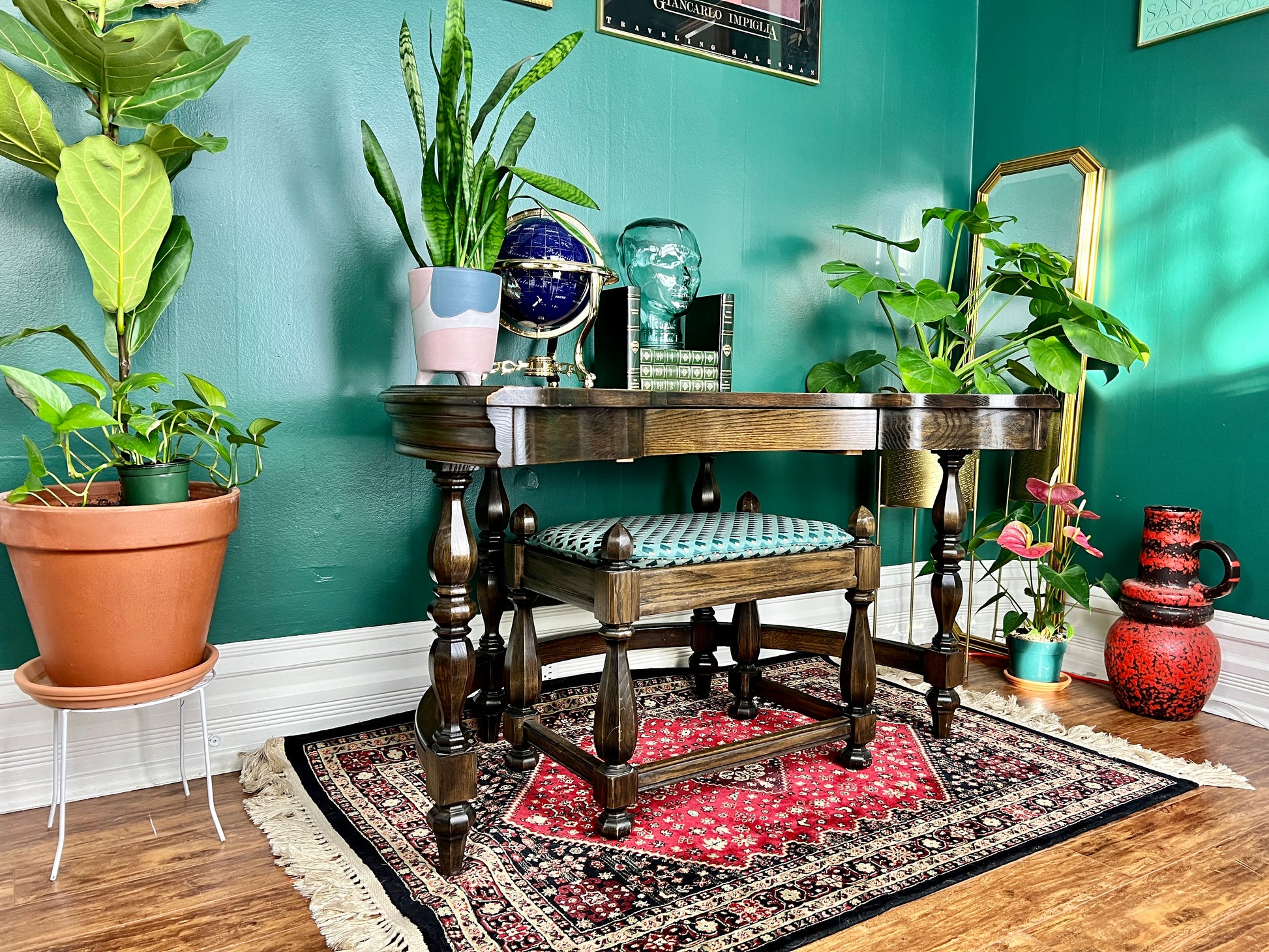 - Unique oak antique writing desk & bench