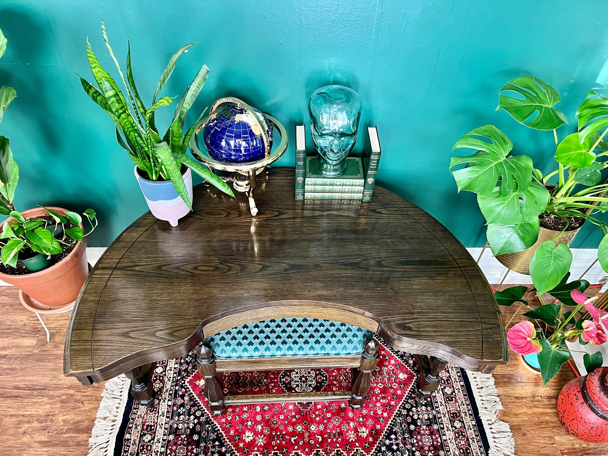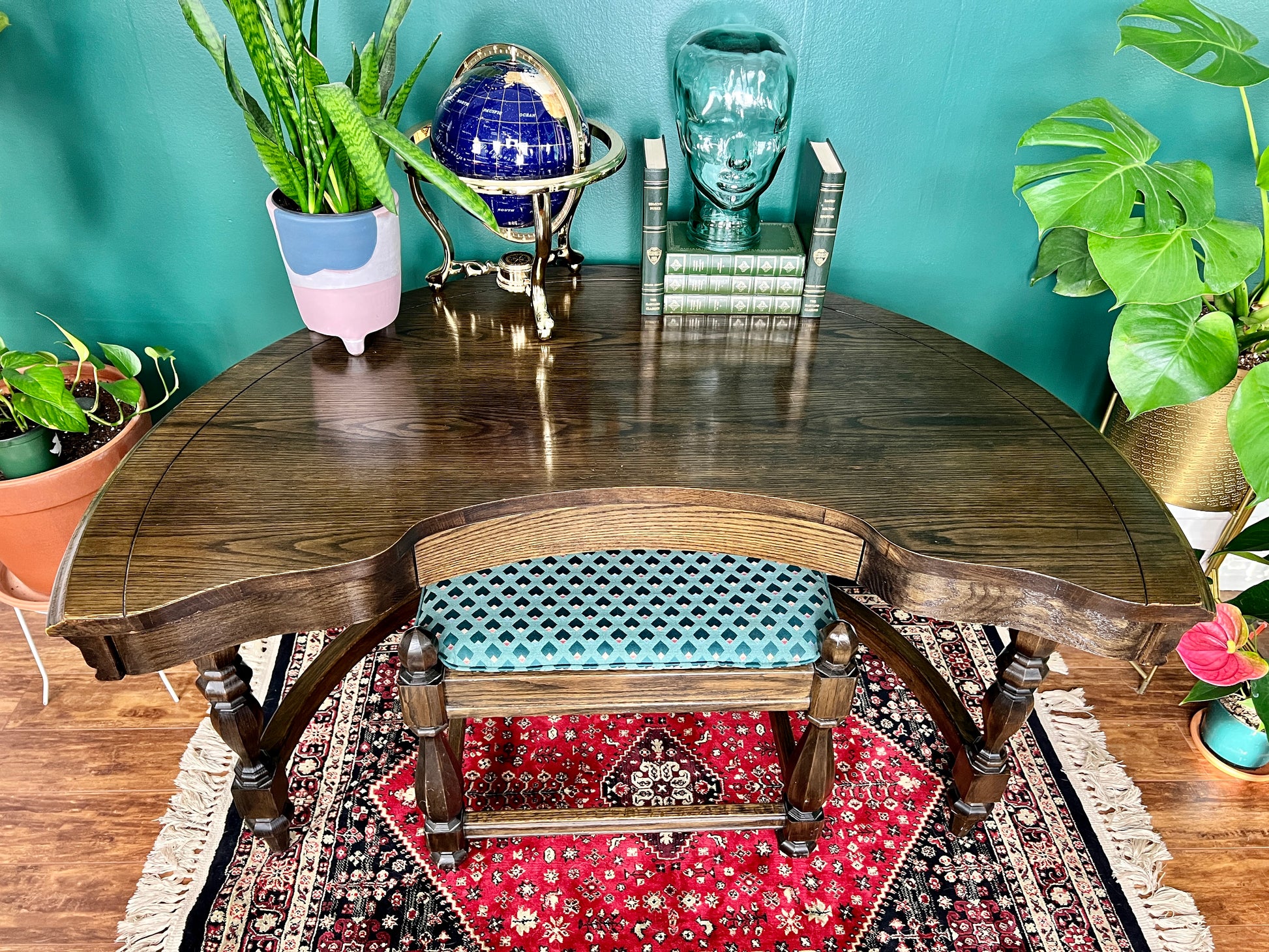 Beautifully unique in every way, like some celestial being made of oak, this table is the perfect place to write a love note, grocery list or work on your memoir.
