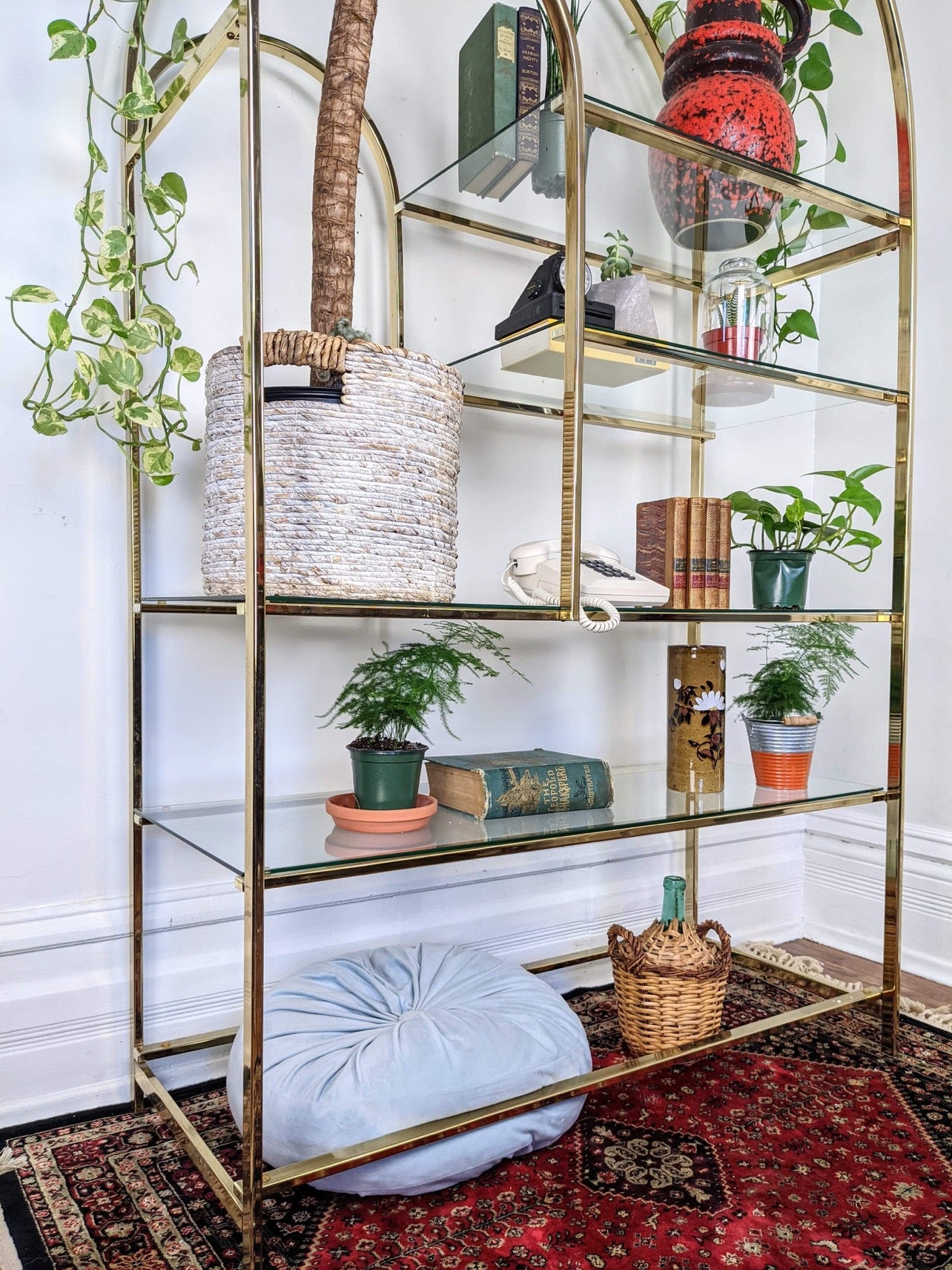 - Vintage Curves brass & glass etagere