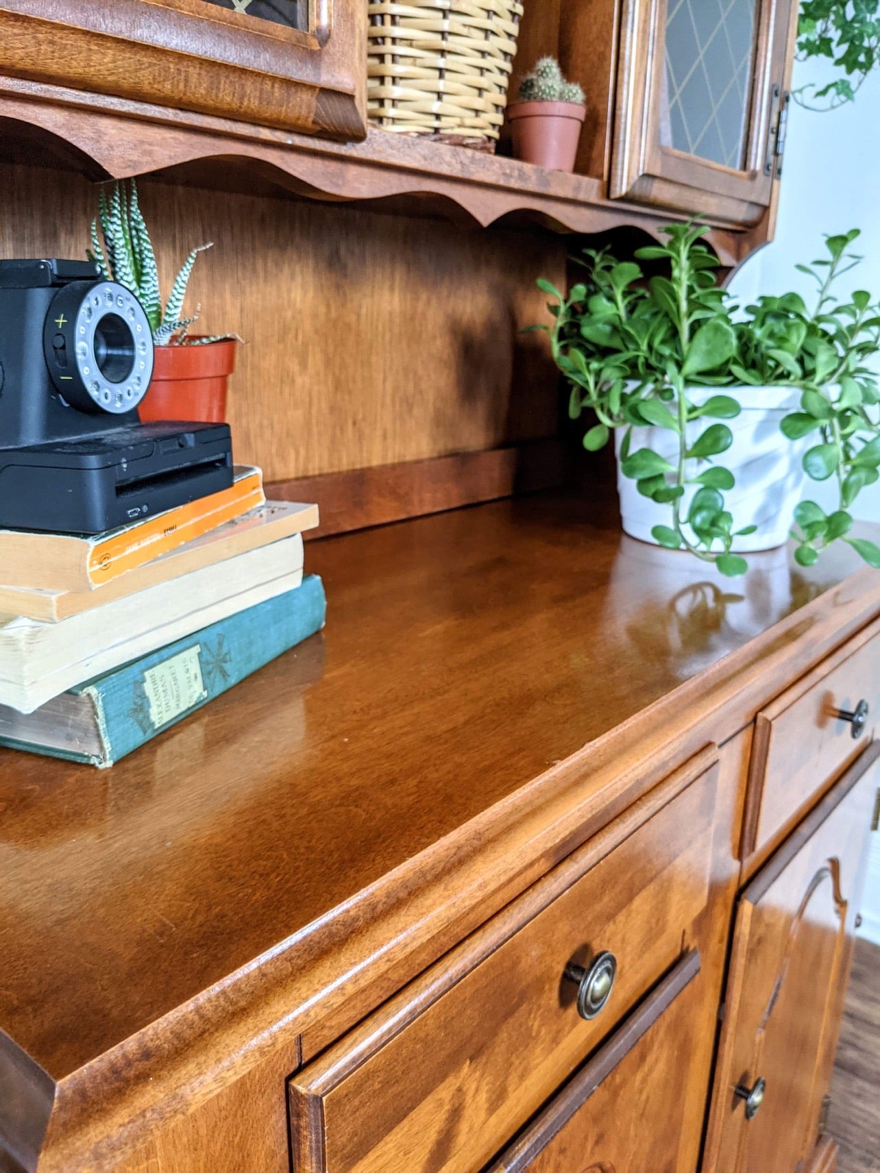 Use it in your kitchen, dining room or living room for dish-ware storage or display your books & plants of all shapes and sizes! This retro darling has ample space, drawers, shelves & cupboards - so no dish, book, plant or knick - knack will be left behind!