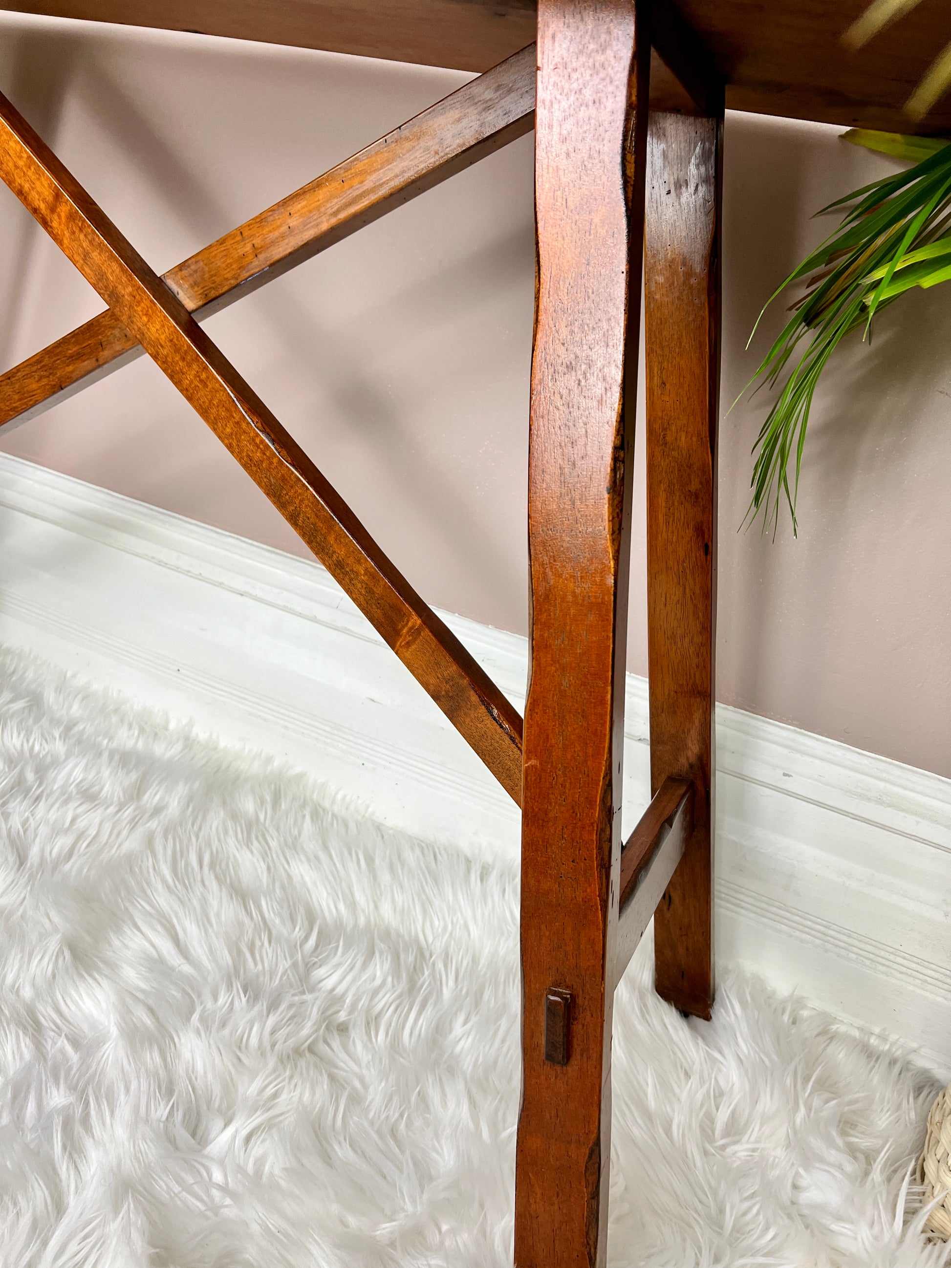 This is a simple yet rustically beautiful x frame hallway or sofa table.