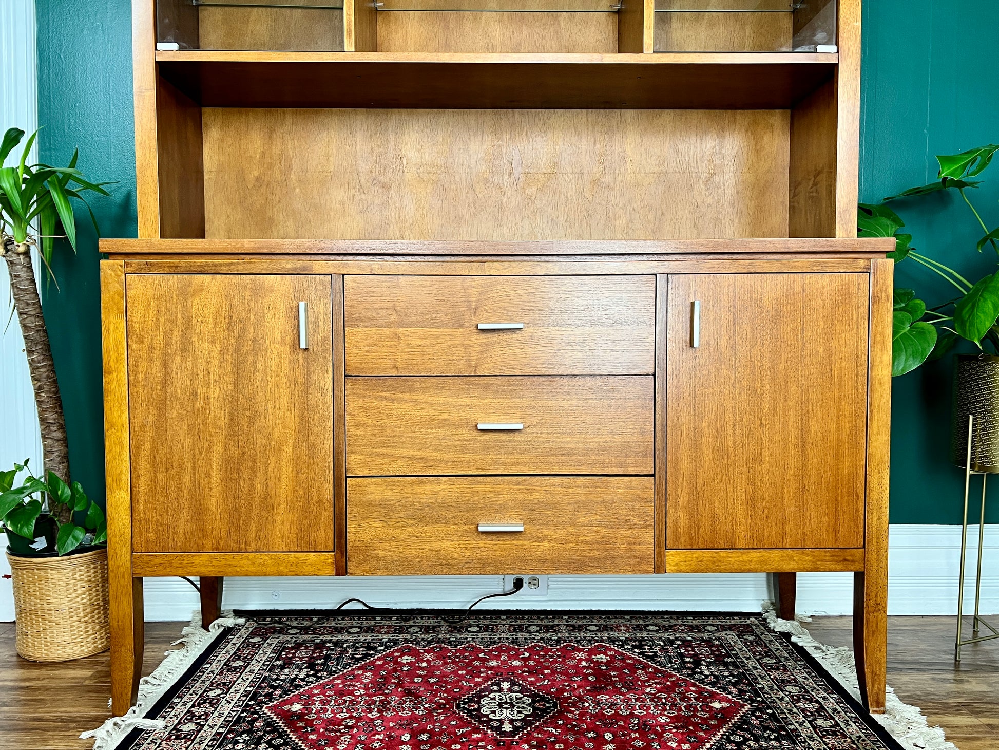 Made from solid mahogany, this midcentury modern style hutch is the perfect piece for your dining or living room!