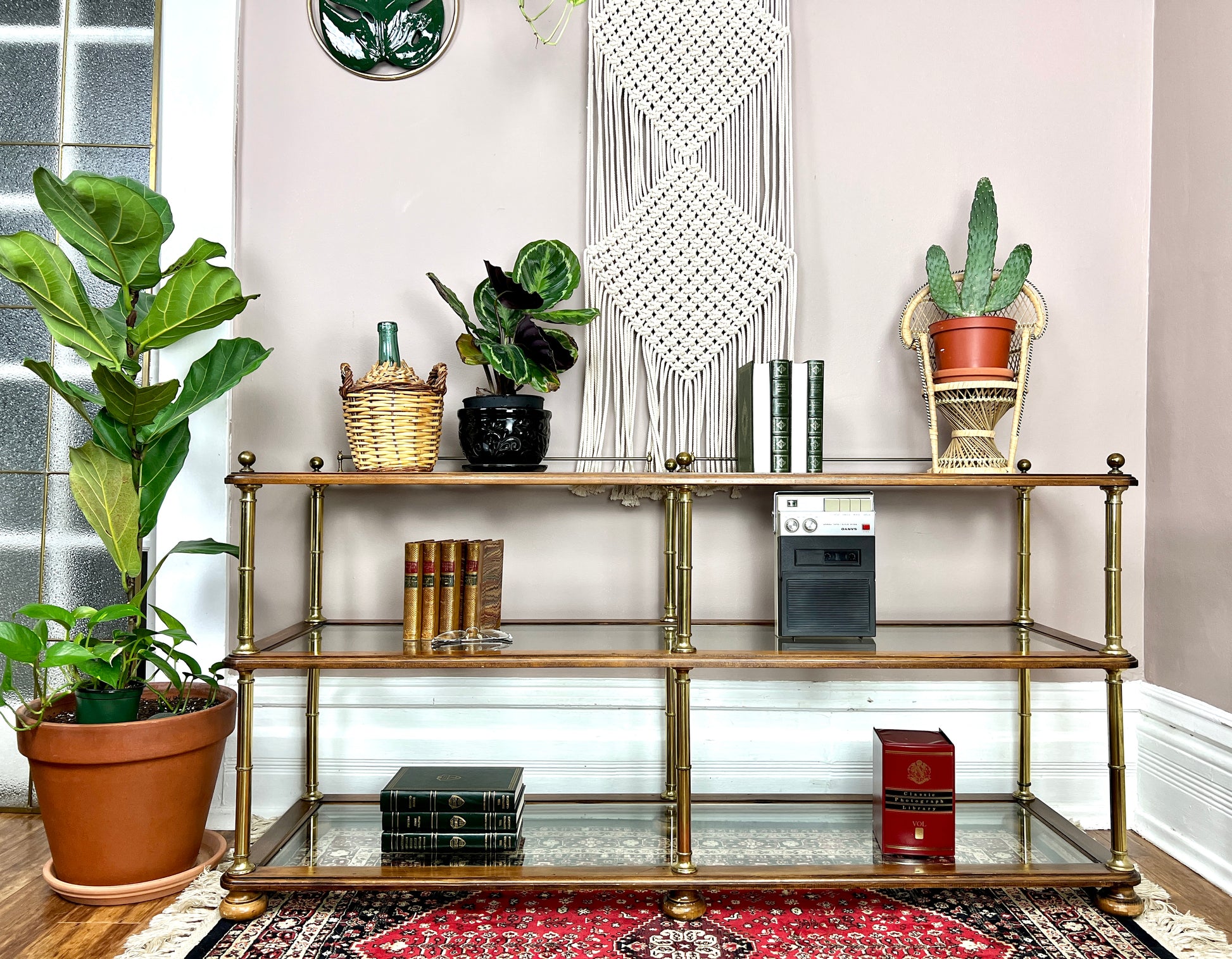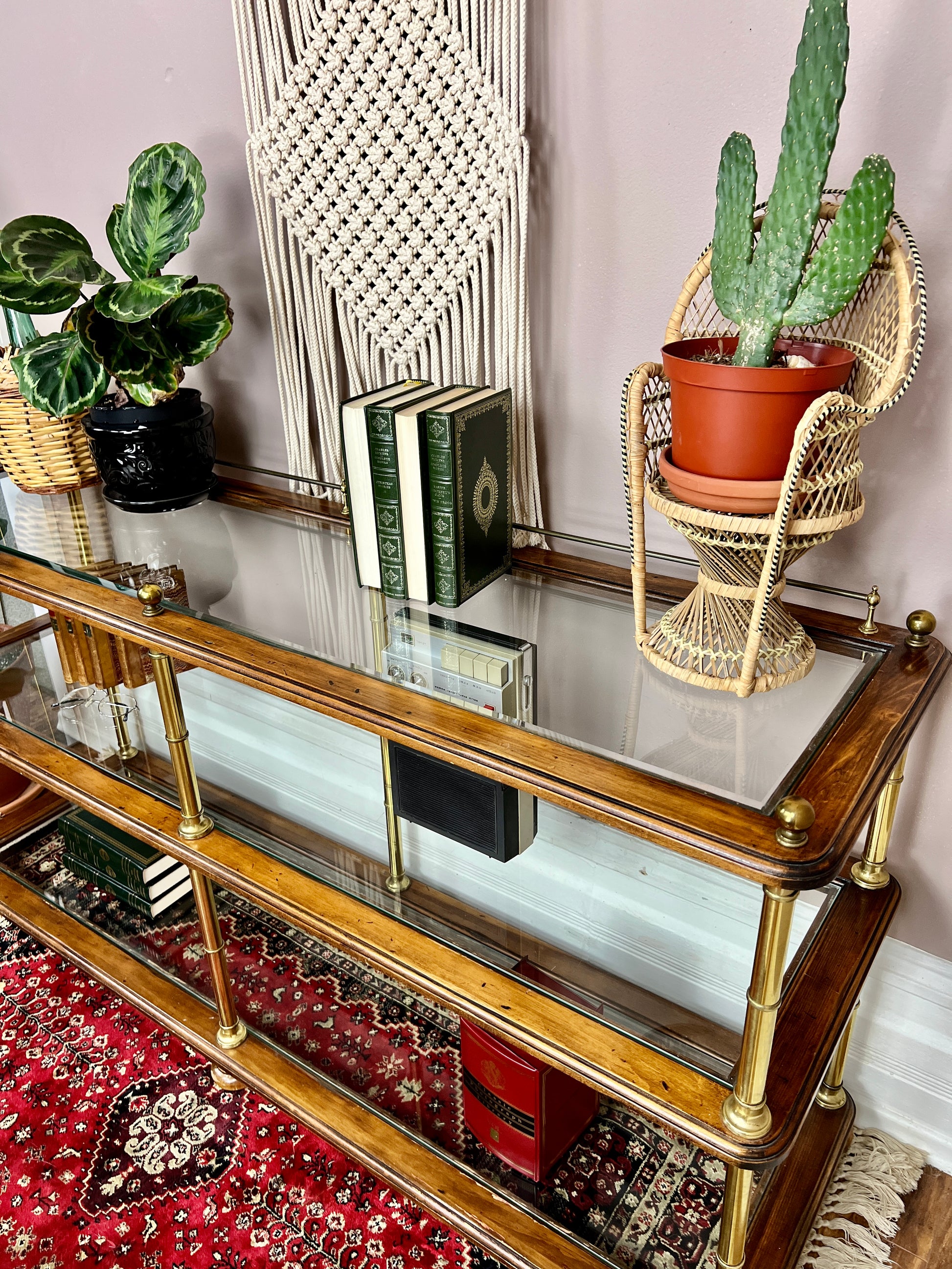 - Vintage solid wood & glass shelf