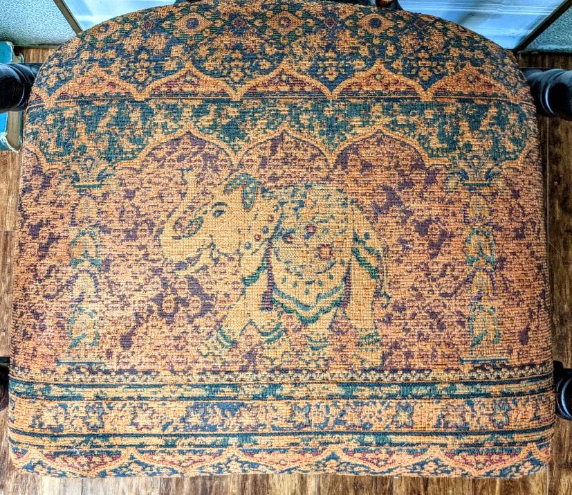 - Vintage Henderson armchairs with embroidered elephant & floral pattern