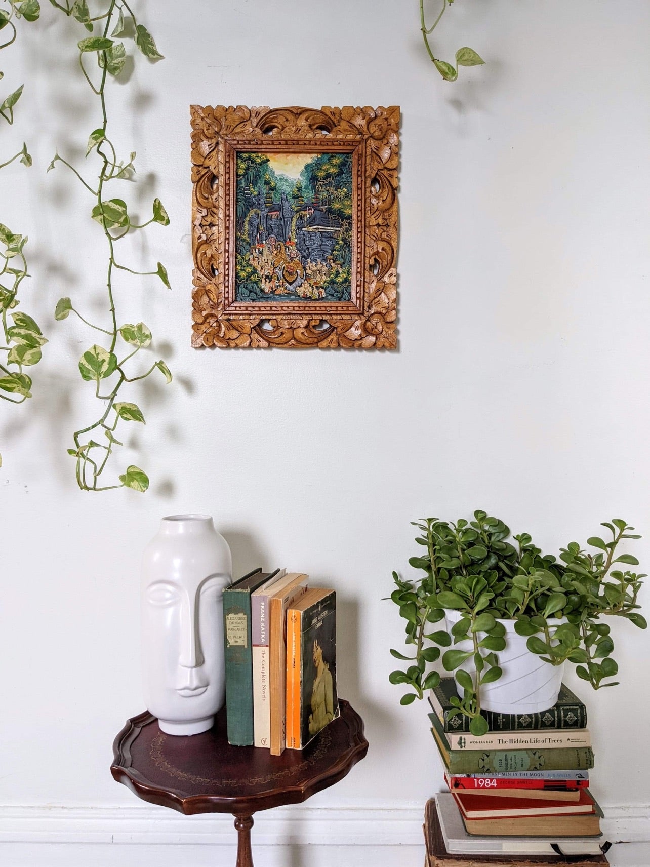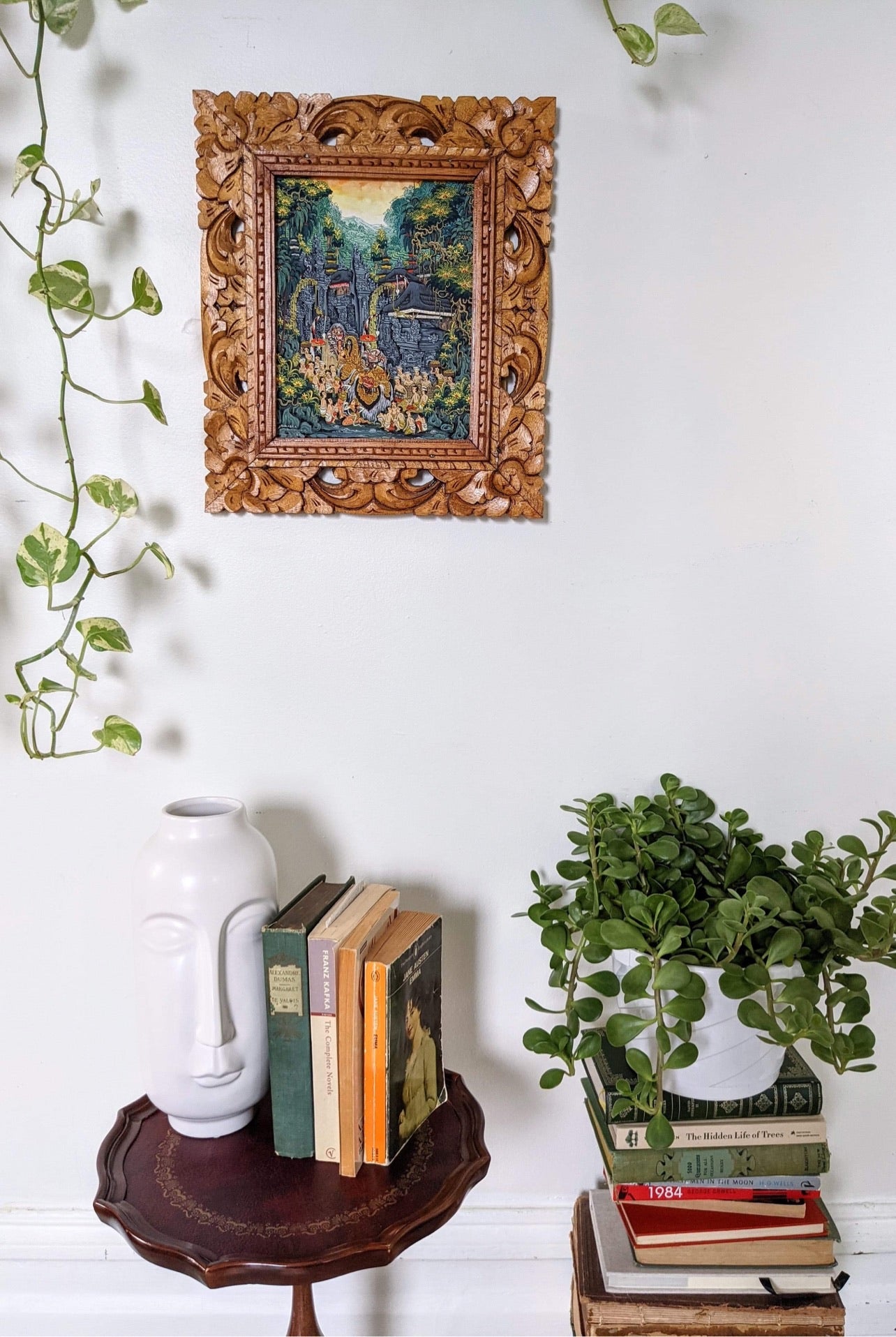 It’s a rare Keliki Art Bali painting, with a hand carved wooden frame.
