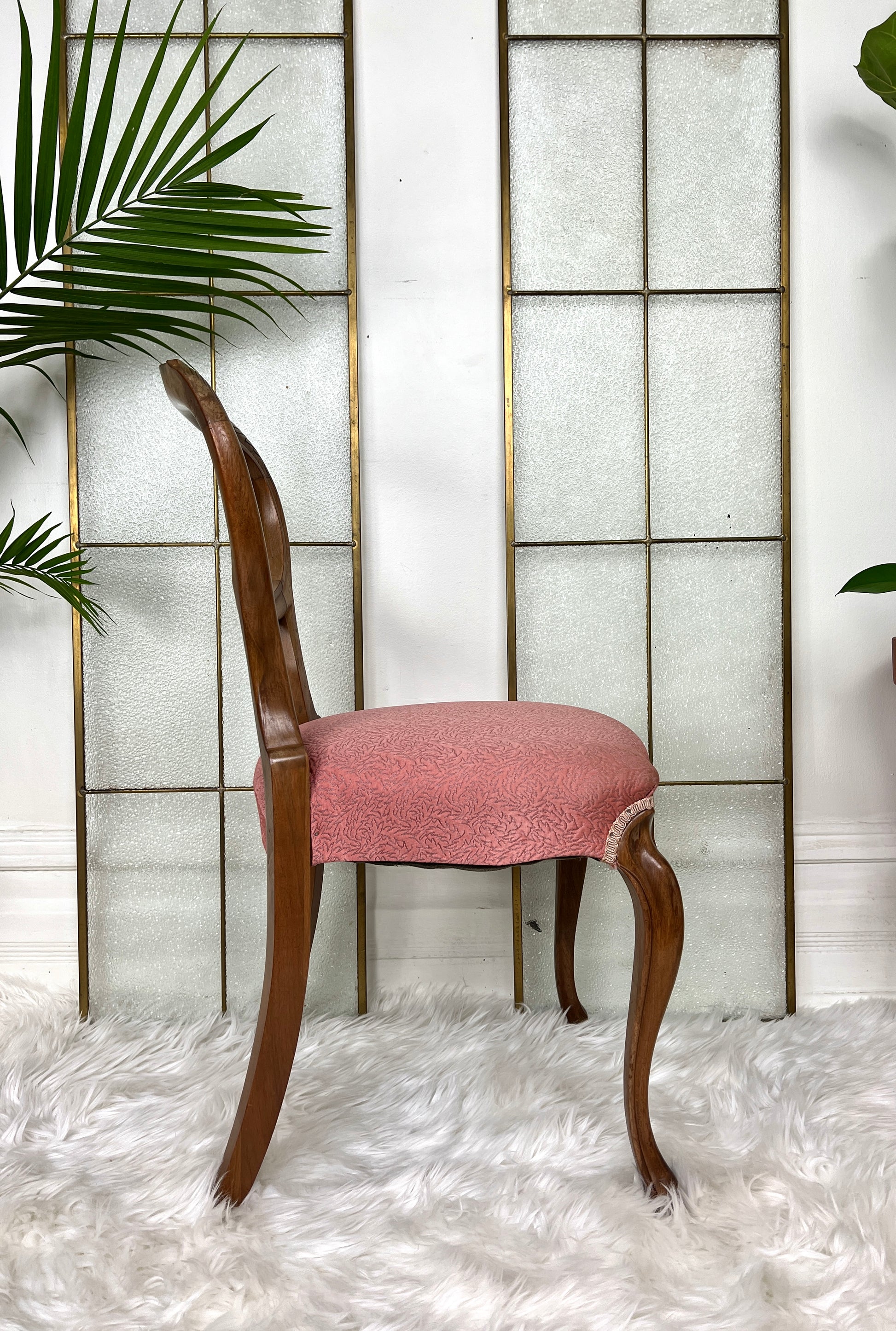 Everything you see here is original! The pinkish embroidered fabric has a beautiful & unique design & the detailing on the carved legs & back is simply exquisite!