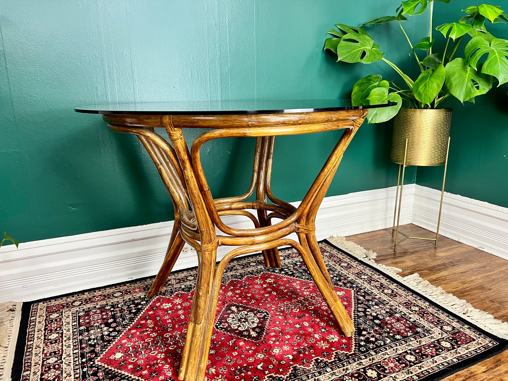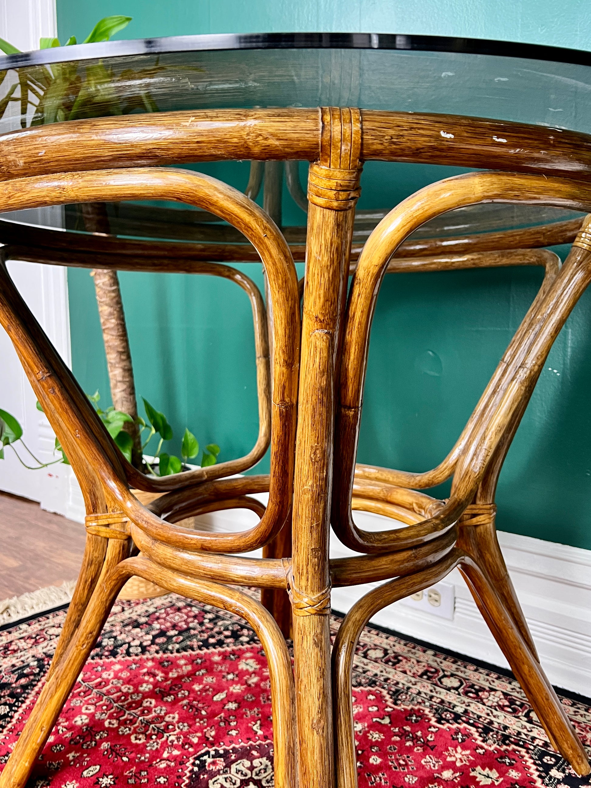 - Vintage rattan & glass table