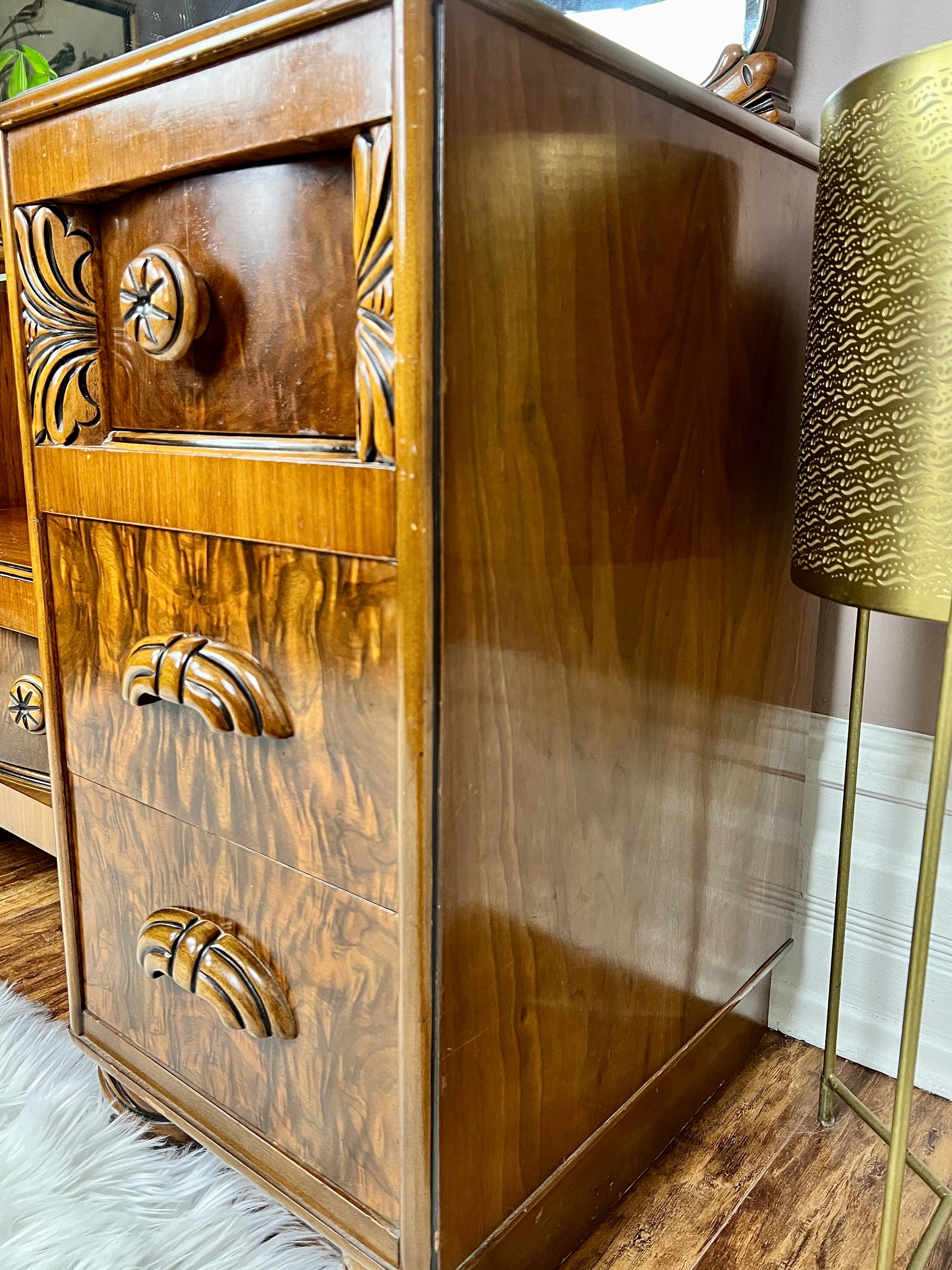 - Antique solid walnut wood vanity