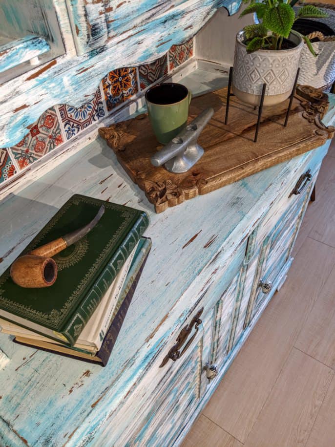 Are you wanting to spice up your home with some funk and colour? Well this beauty is just the ticket. Created in the vein of Beach House style, this hutch is one of a kind. It’s not only exquisite, but it is sturdy and well built - no ocean breeze could blow this baby over.