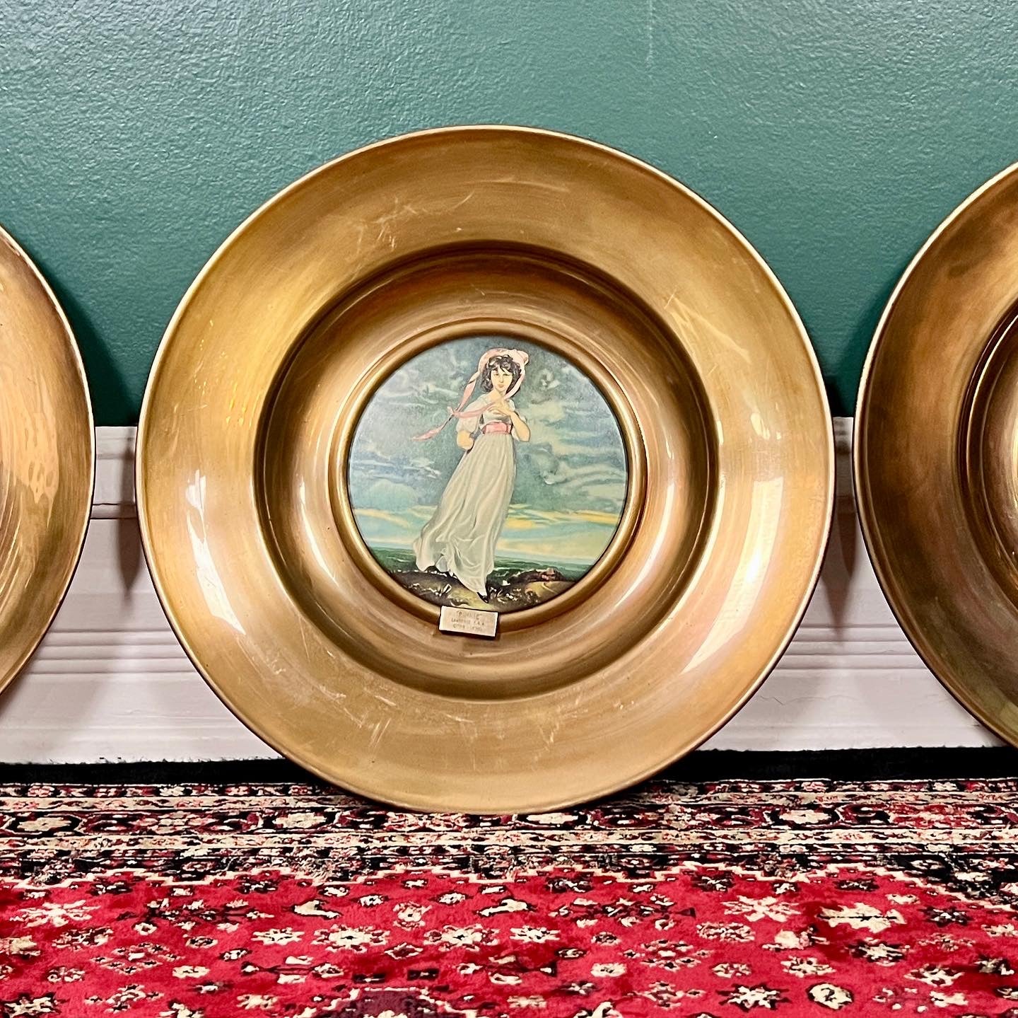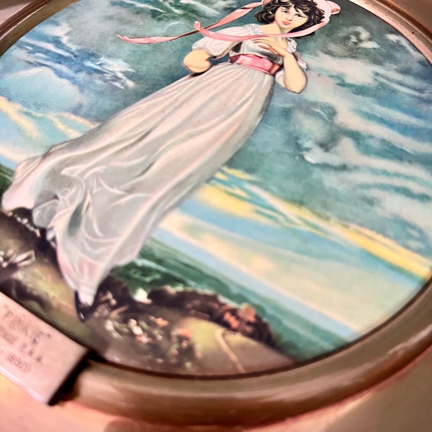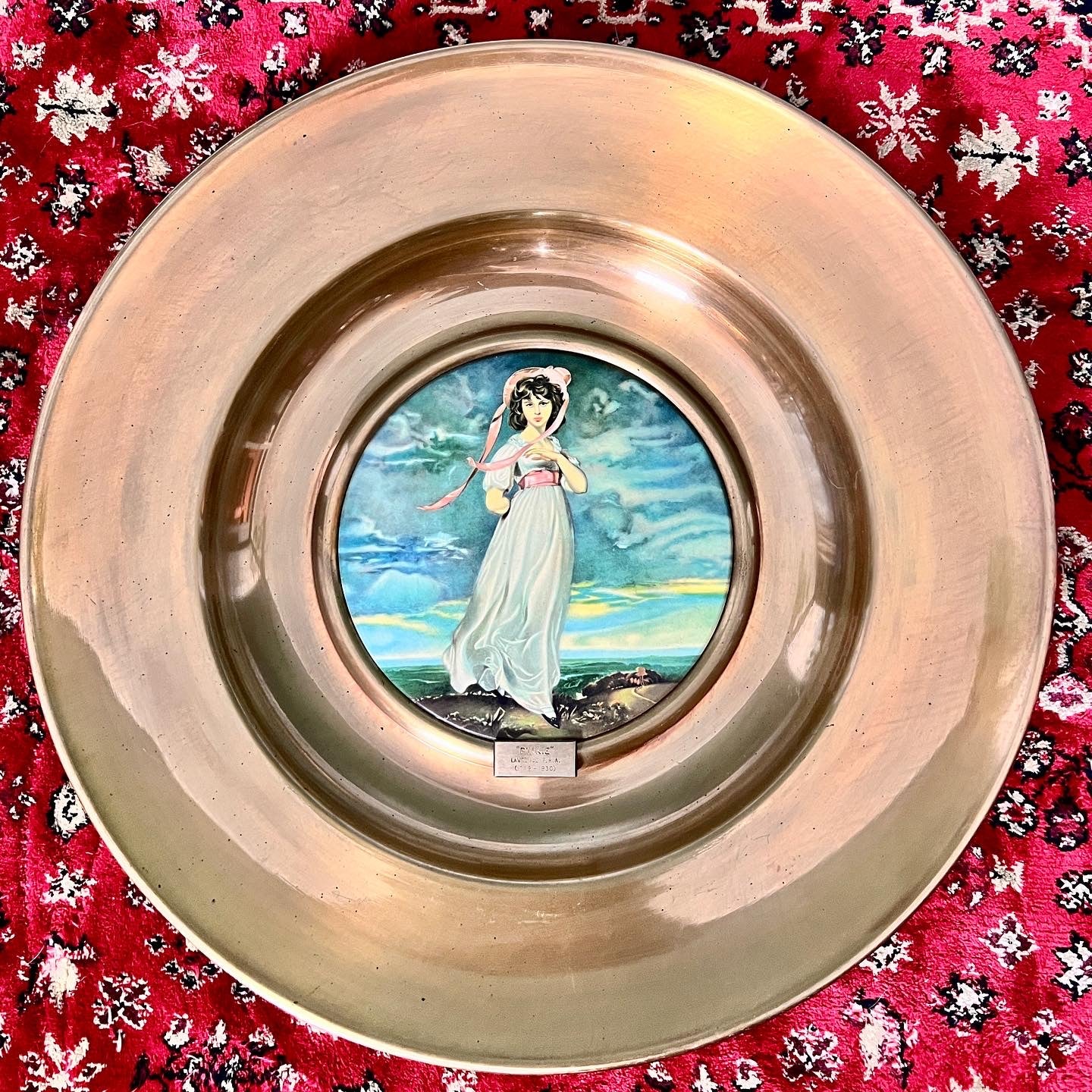 The painting was put onto the brass using the Oligraph process on metal. The Wall plaque has some age related tarnishing which is only to be expected.