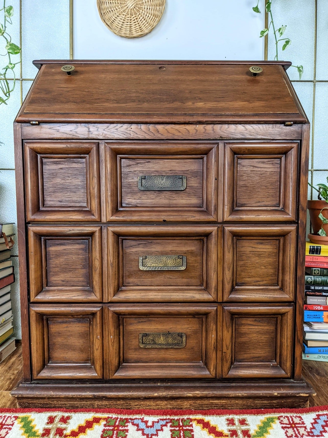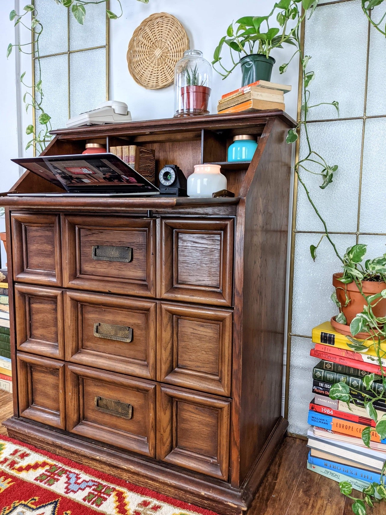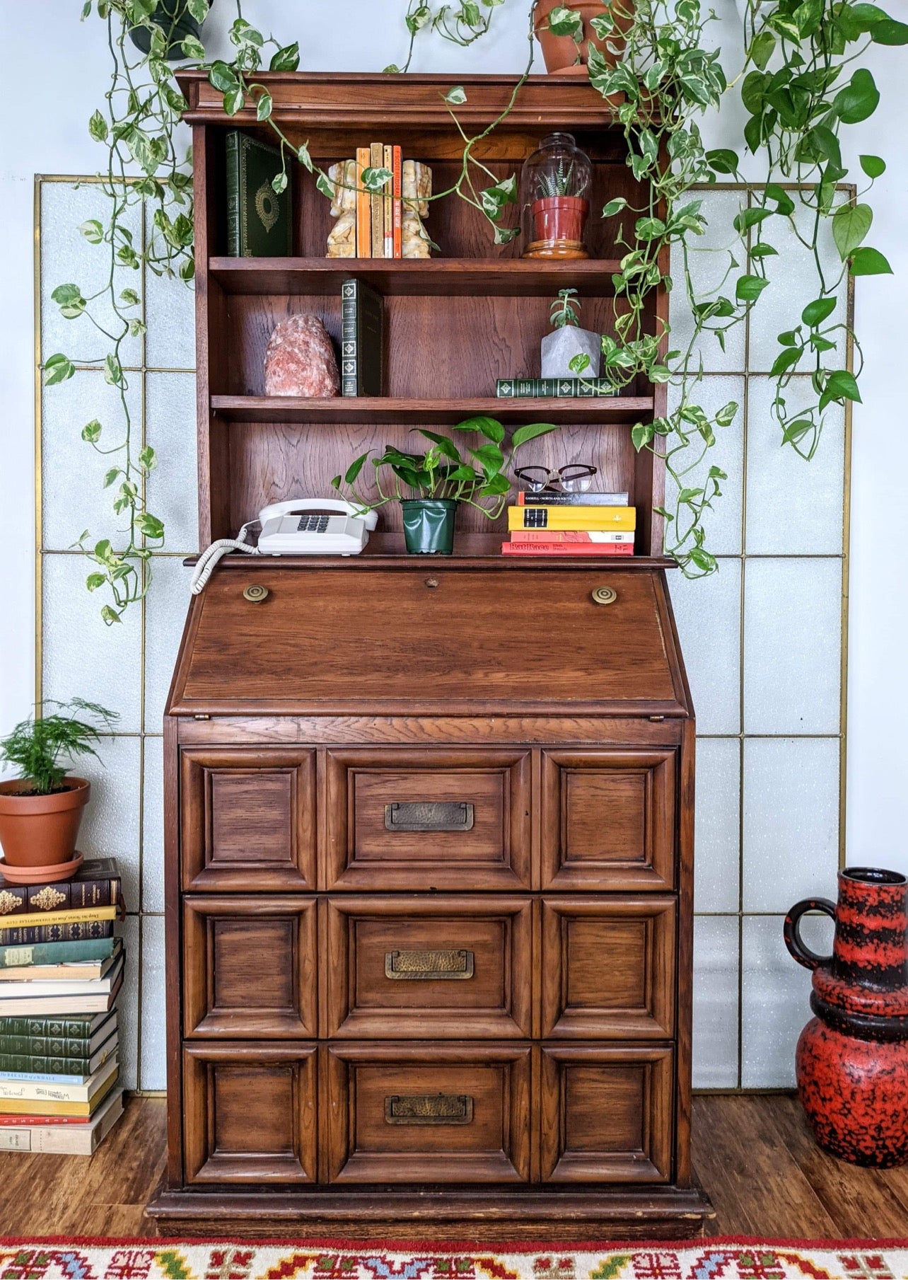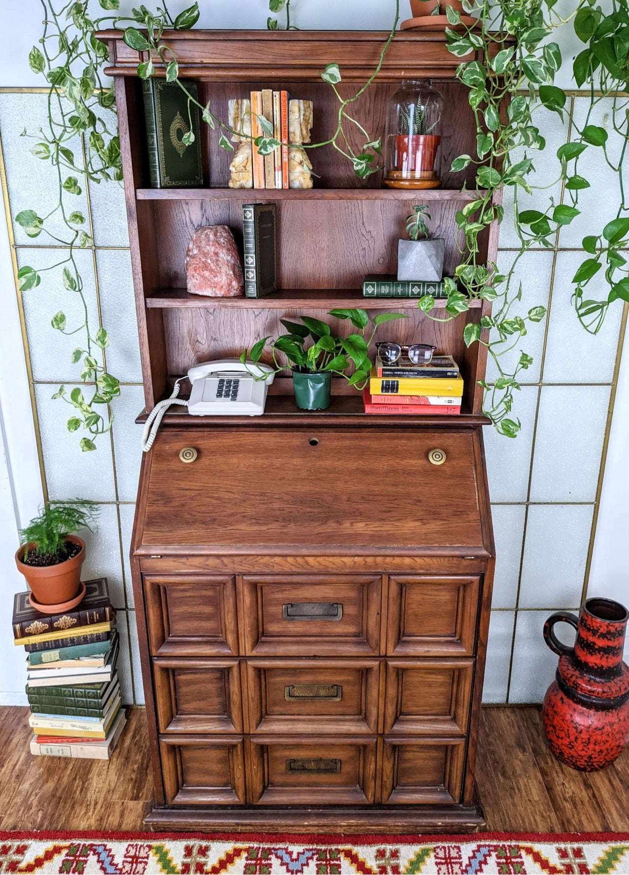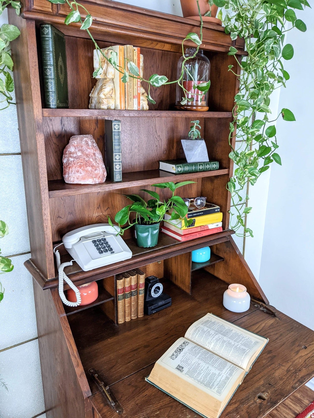 It would be great as a writing space in your living room or use it as a fancy dresser for your bedroom. You could keep clothes in there, even open the desk part up & display plants and knick-knacks - the possibilities are endless!