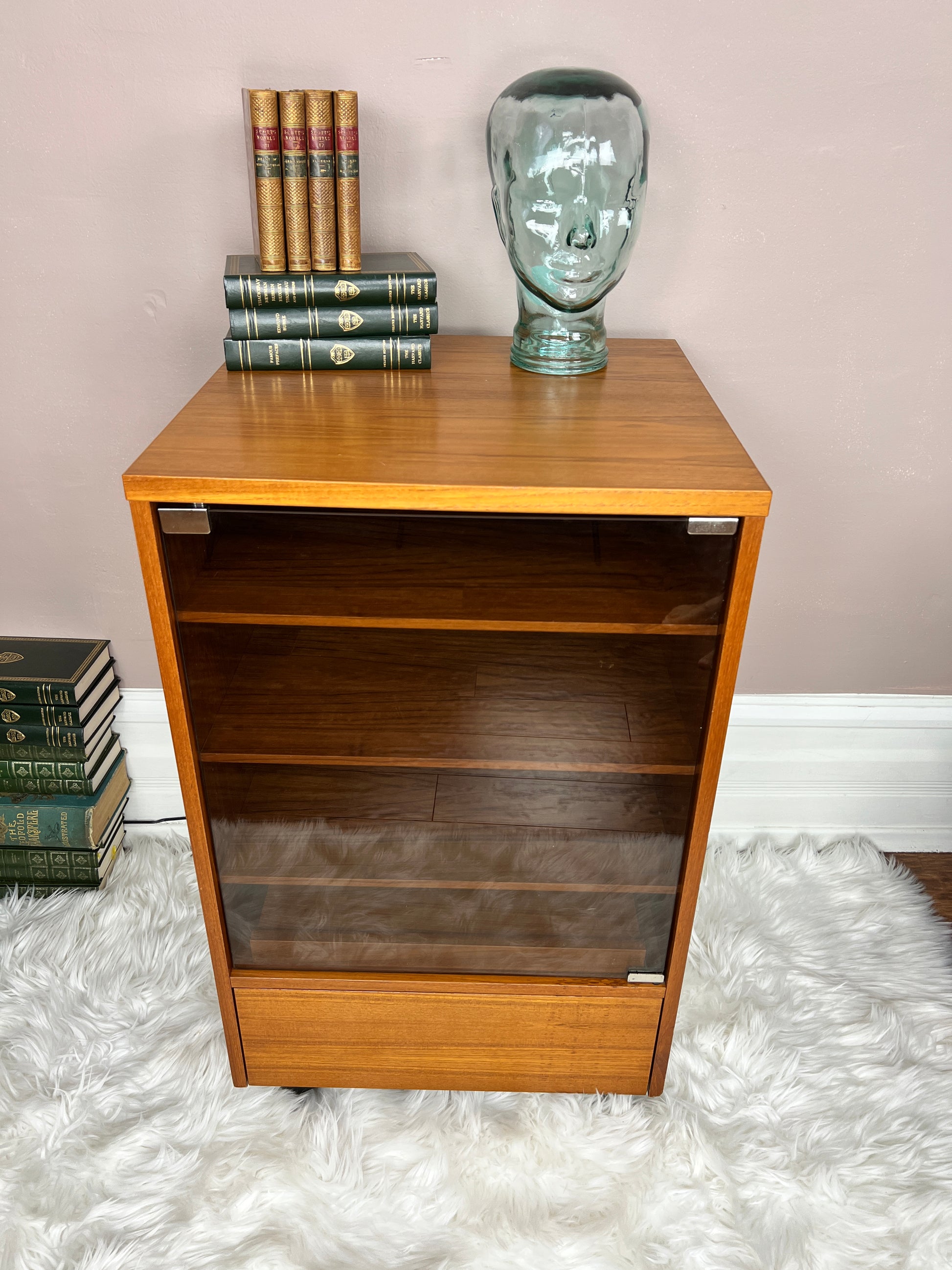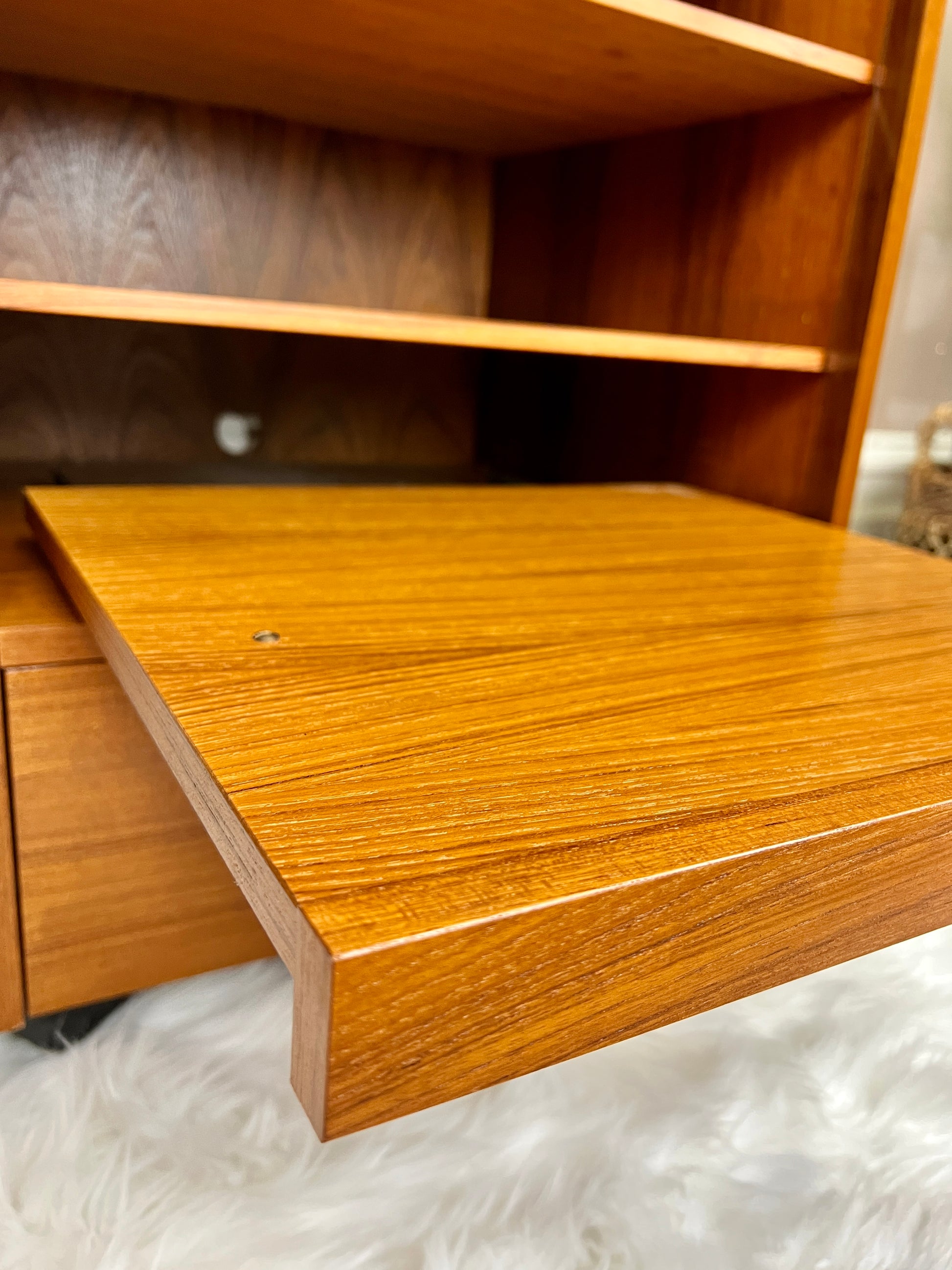 This vintage teak handsome devil was made in Canada & is the perfect piece to add some character to your home. Use it for your books, record player, tapes, plants, & other knick-knacks.