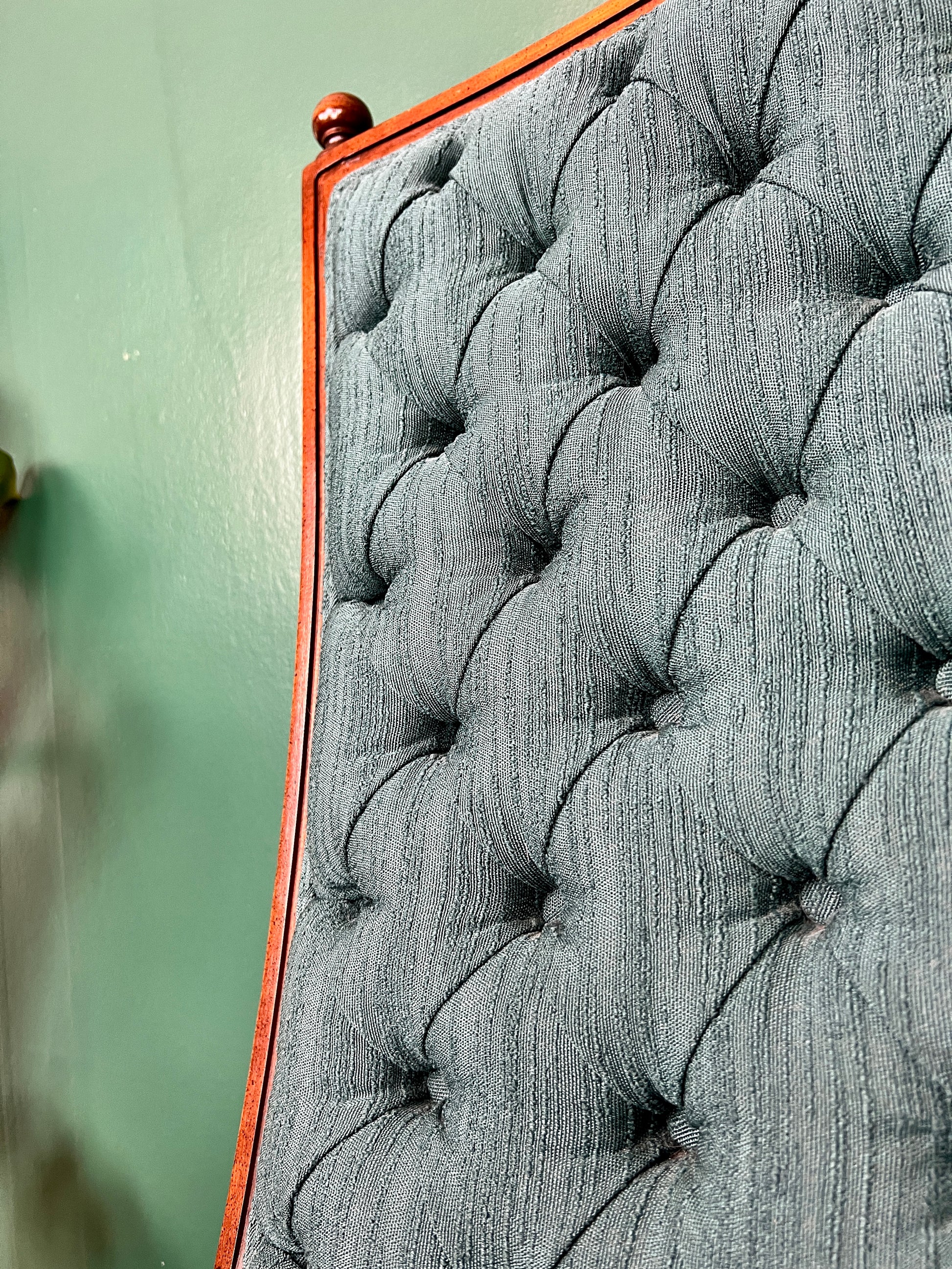 - Beautiful tuffted fabric & dark wooden frame