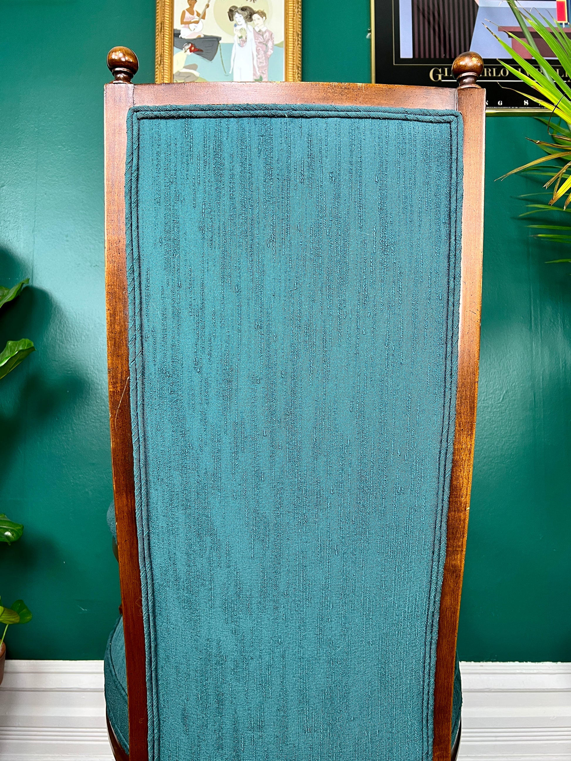 With a bent tall & tuffted back, wide arms, & beautifully dark wooden frame - you'll never want to leave the enchanting arms of The Tradewinds Chair.