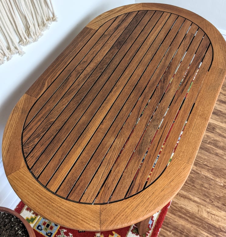 - Oval coffee table, for indoor or outdoor use