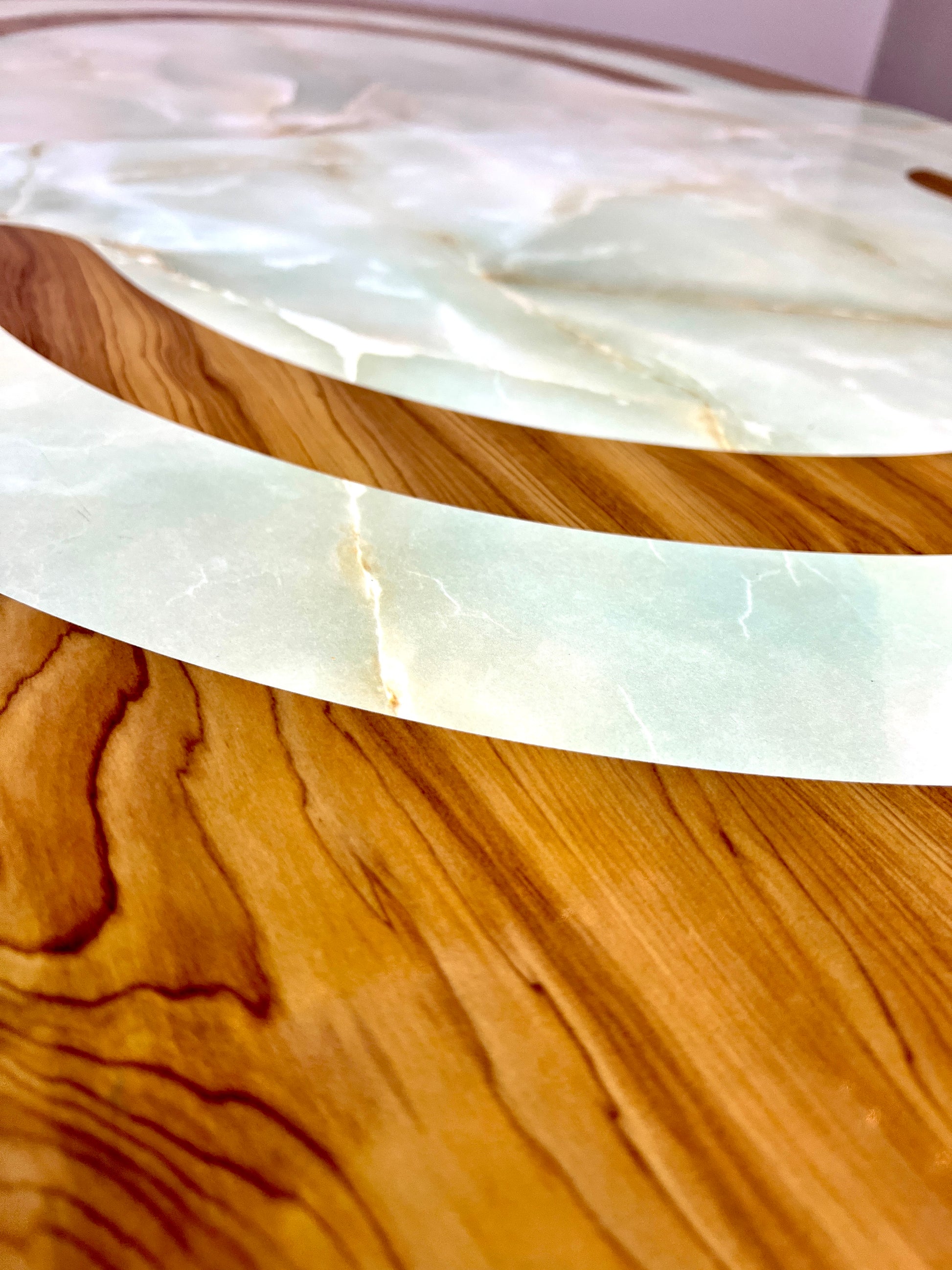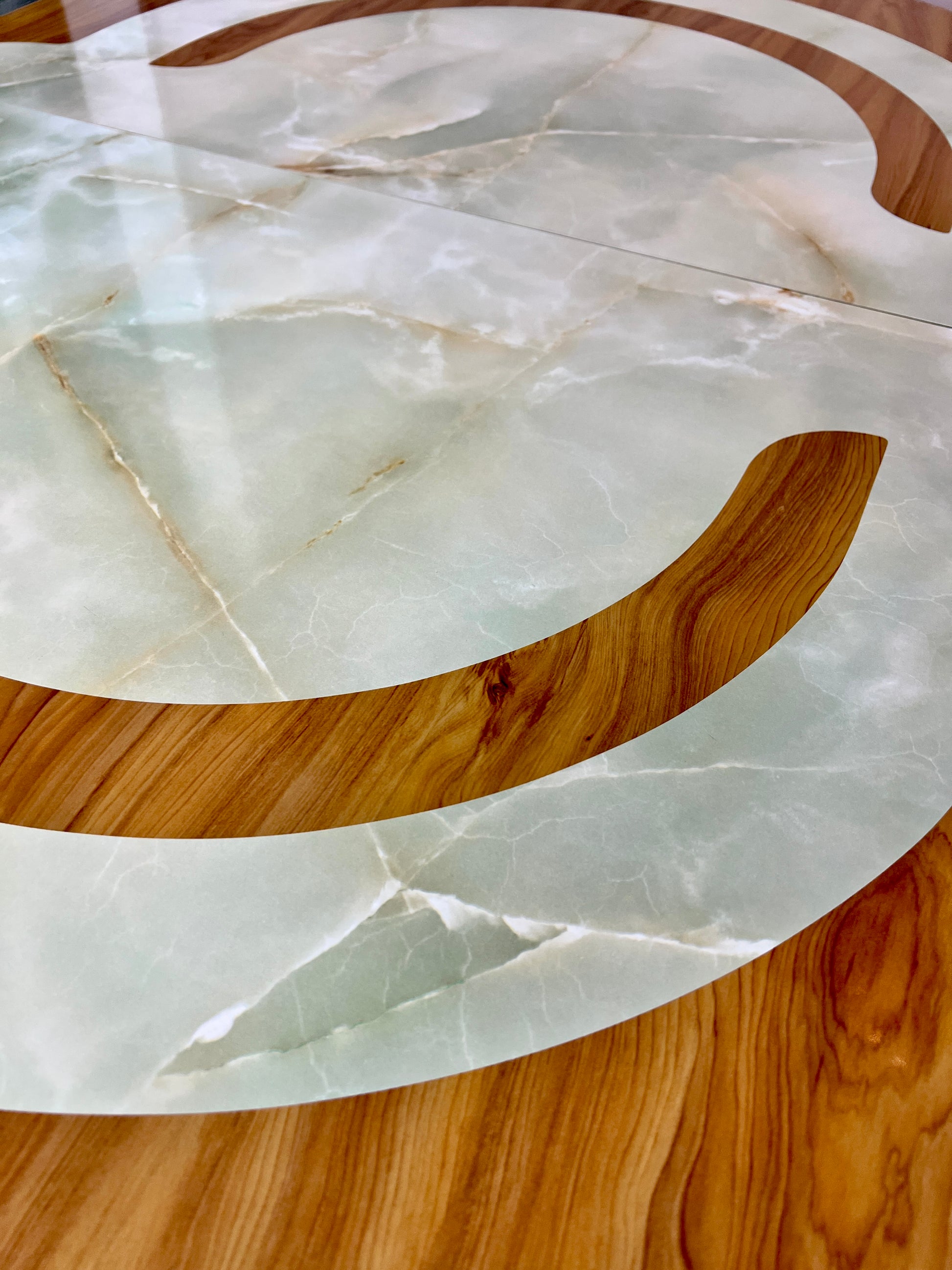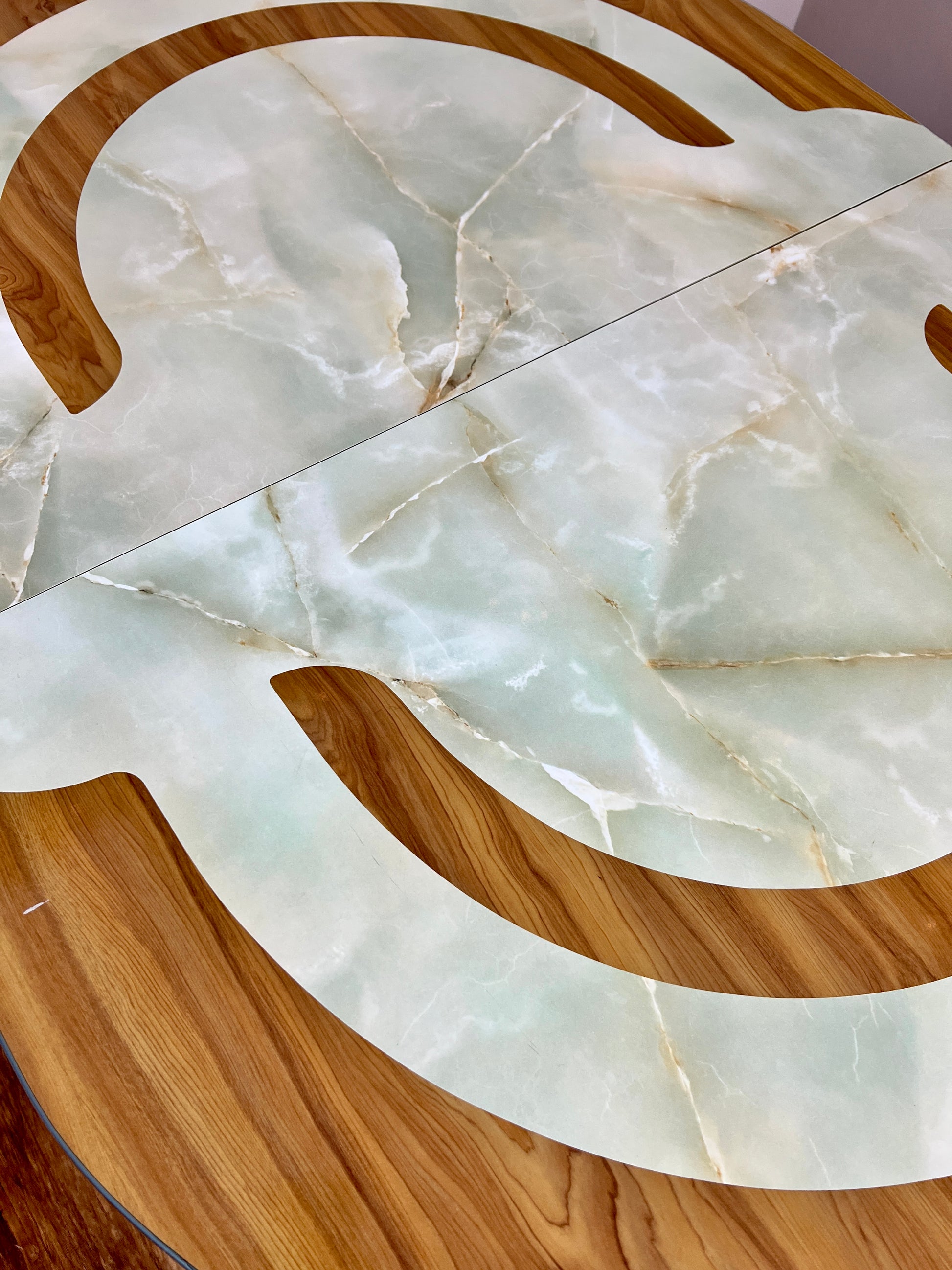 - Table has beautiful jade like inlay