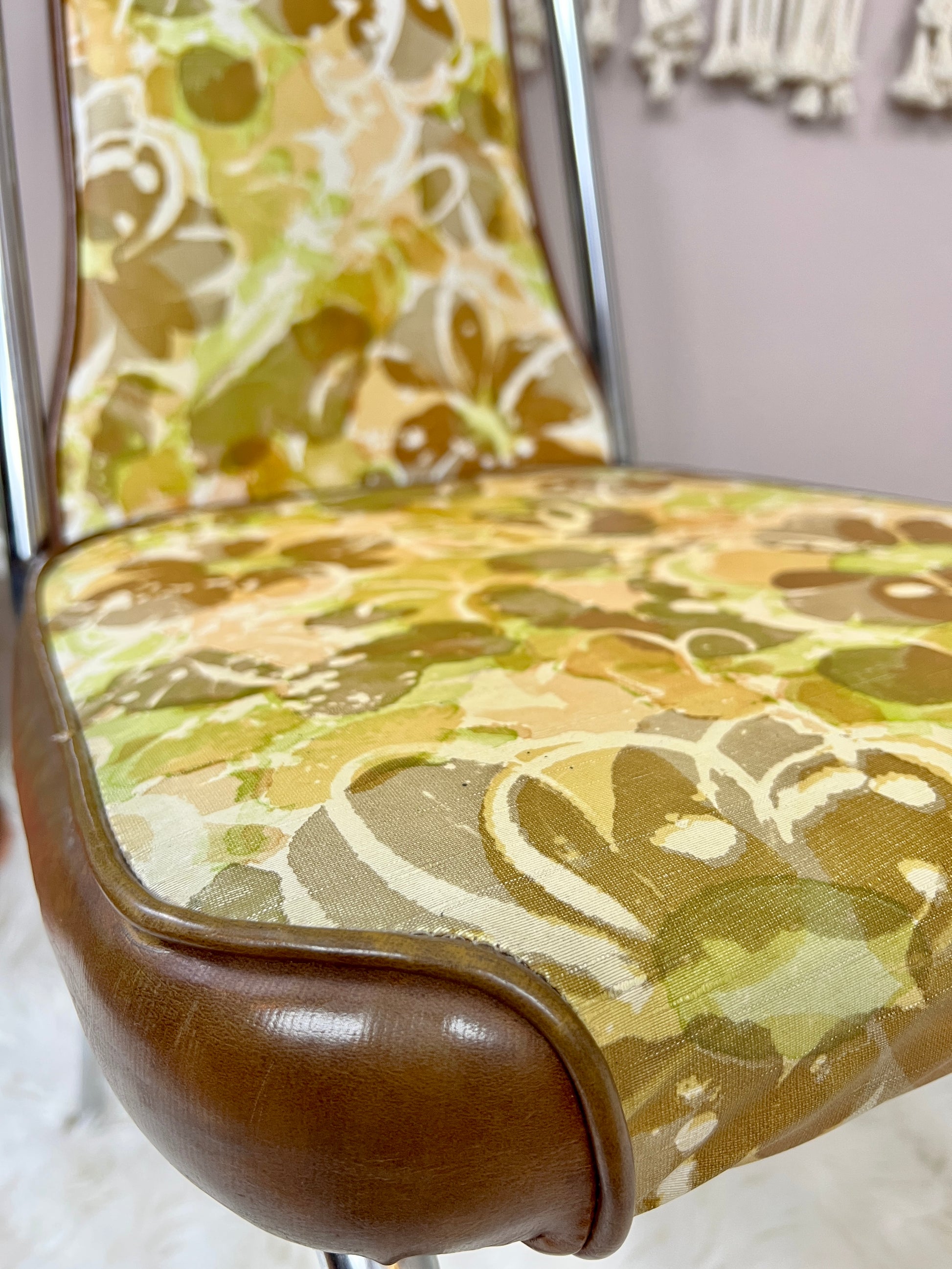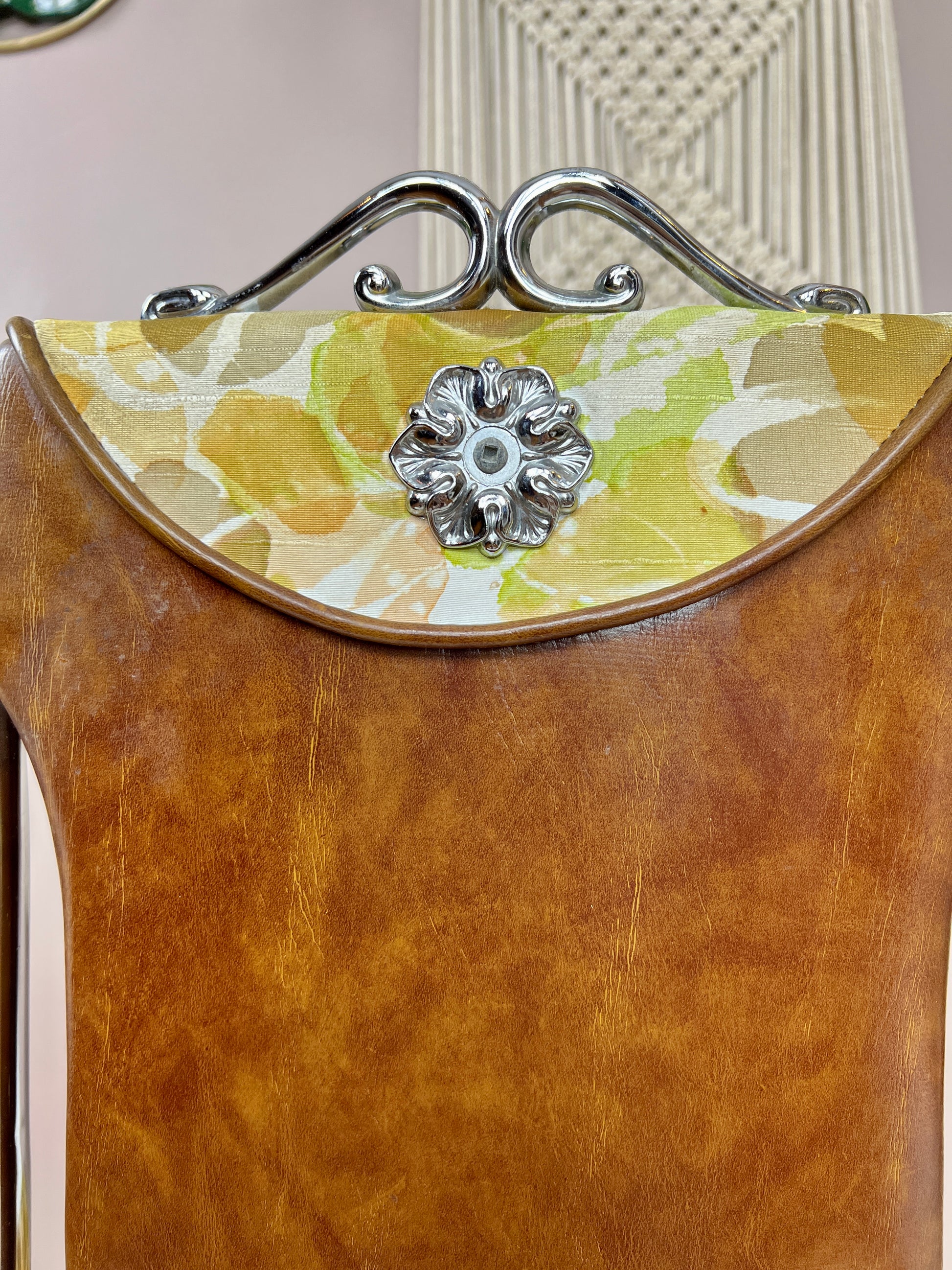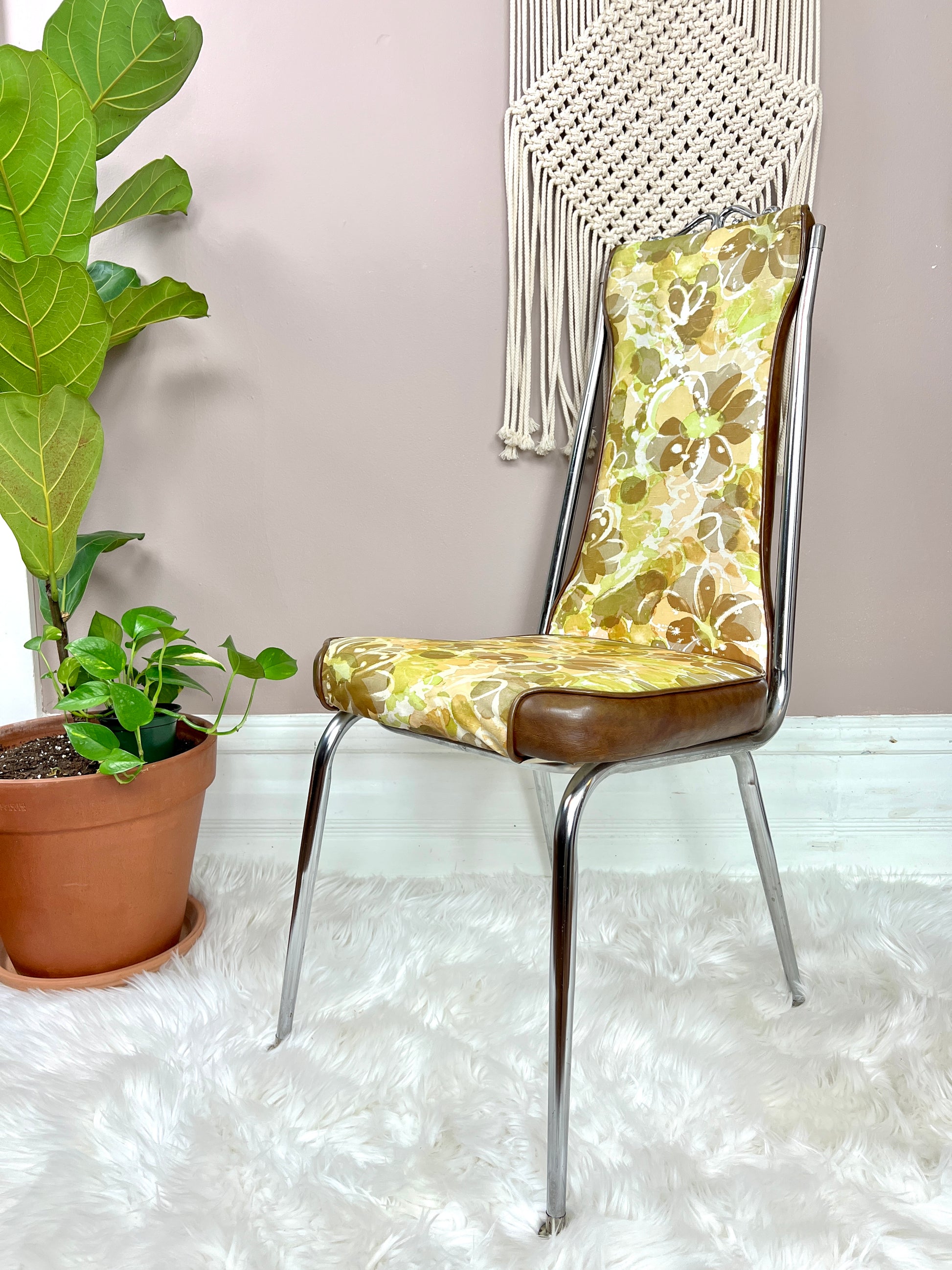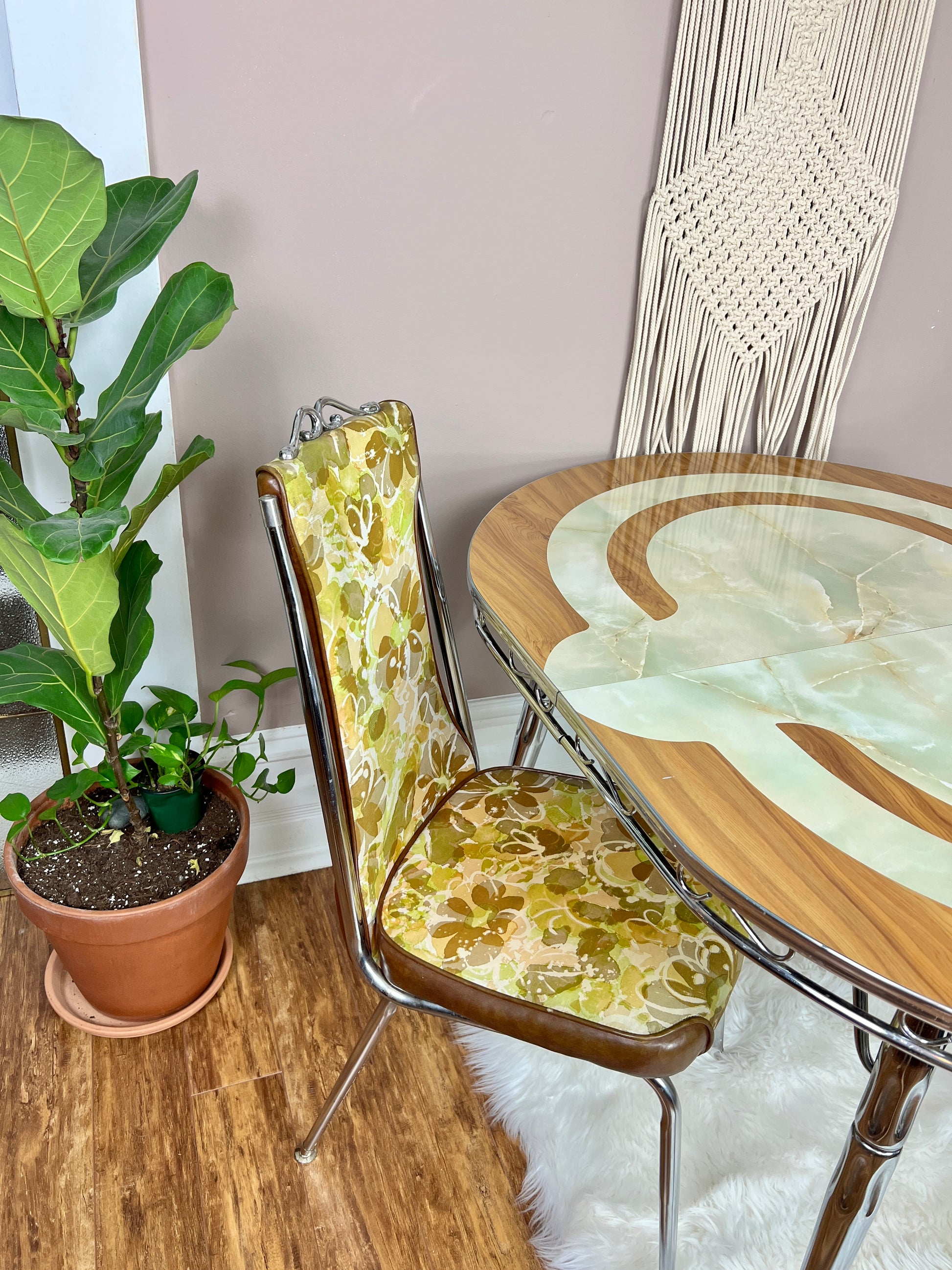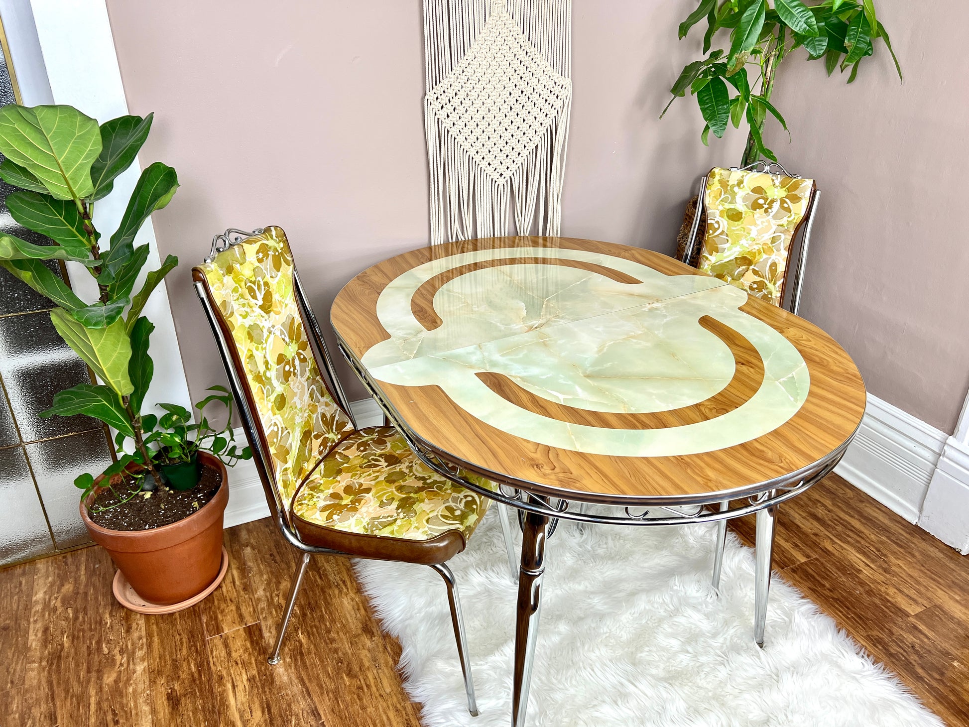 With beautiful jade like inlay, beautiful chrome detailing - this dining set is a lovely & unique retro piece.