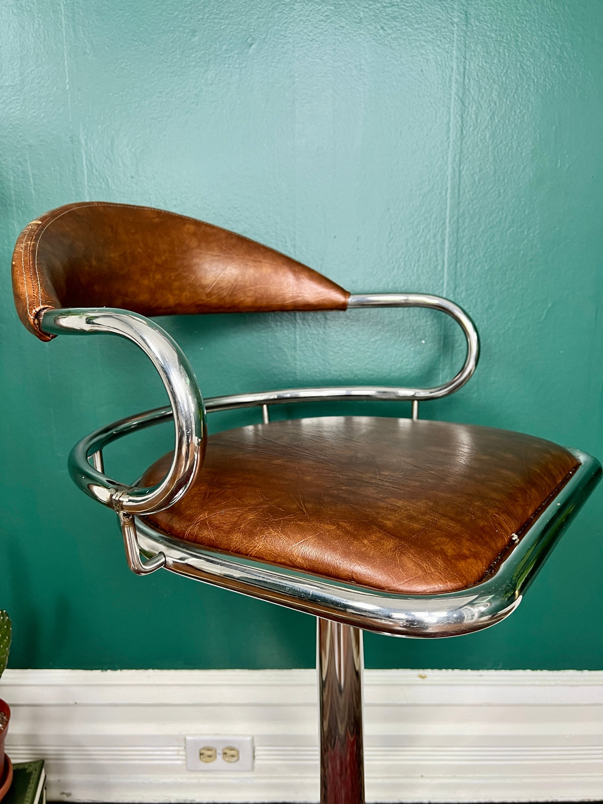 - vintage chrome & faux leather stool